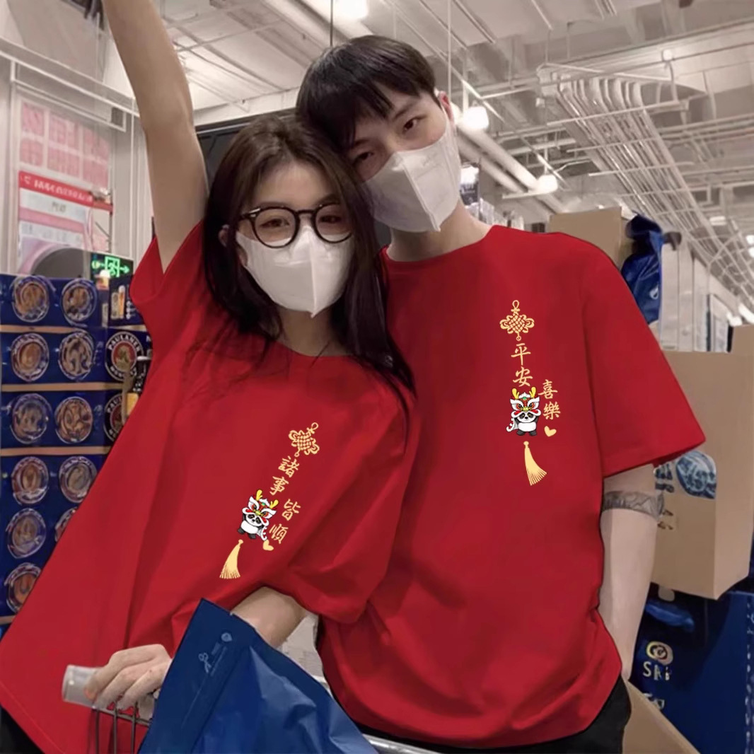 カップル服純綿半袖tシャツ2025新型本命年赤いお祝い結婚写真服ファッションクラス服