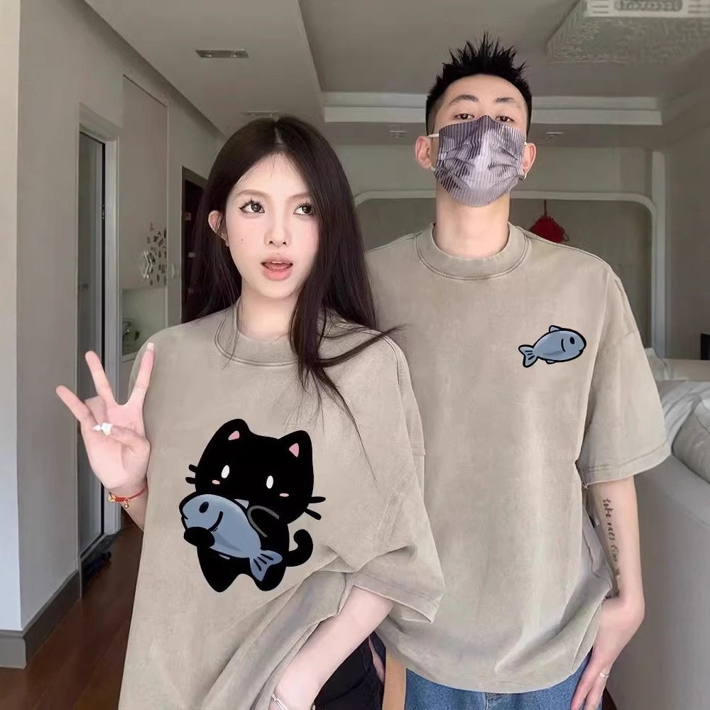 夏の純綿半袖Tシャツカップル着用レイジースタイルルーズニッチデザインメンズとレディーストップス学生トレンディなブランドクラスのユニフォーム