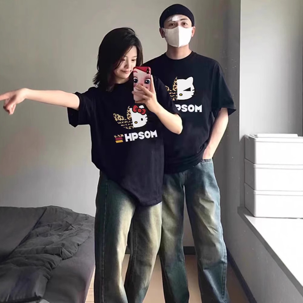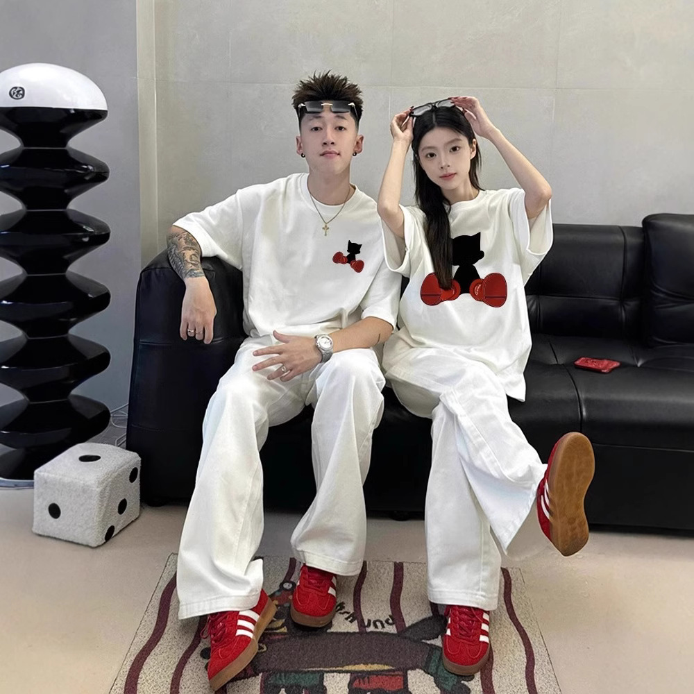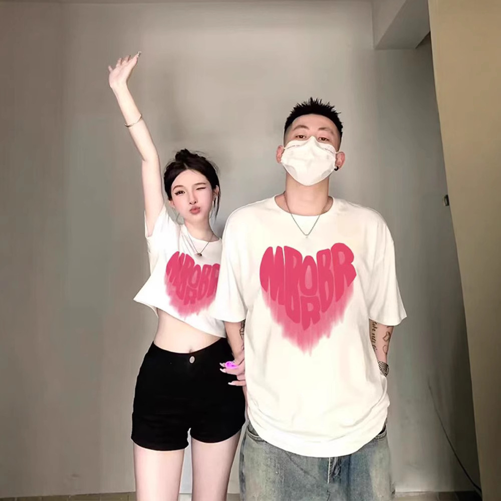 カップル着用純綿半袖 Tシャツ 2025 夏の新オーバーサイズニッチ男性と女性のトップストレンディなブランドクラスの制服