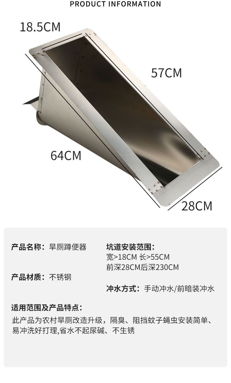 农村旱厕蹲便器旱厕改造排水不锈钢防臭茅坑便池蹲坑厕所大便无中