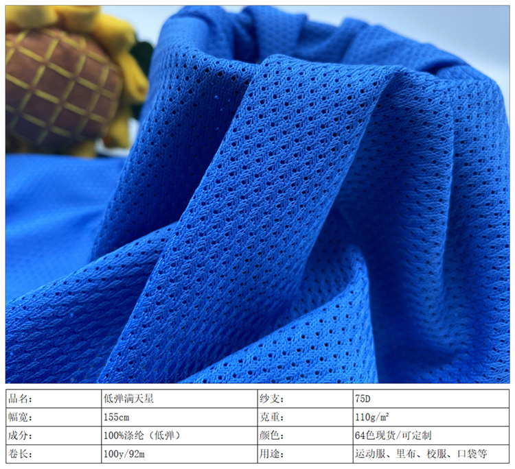 スポットメッシュ生地低弾性ベビーブレスメッシュ通気性吸湿発散性スポーツウェアTシャツ生地ジャケット裏地
