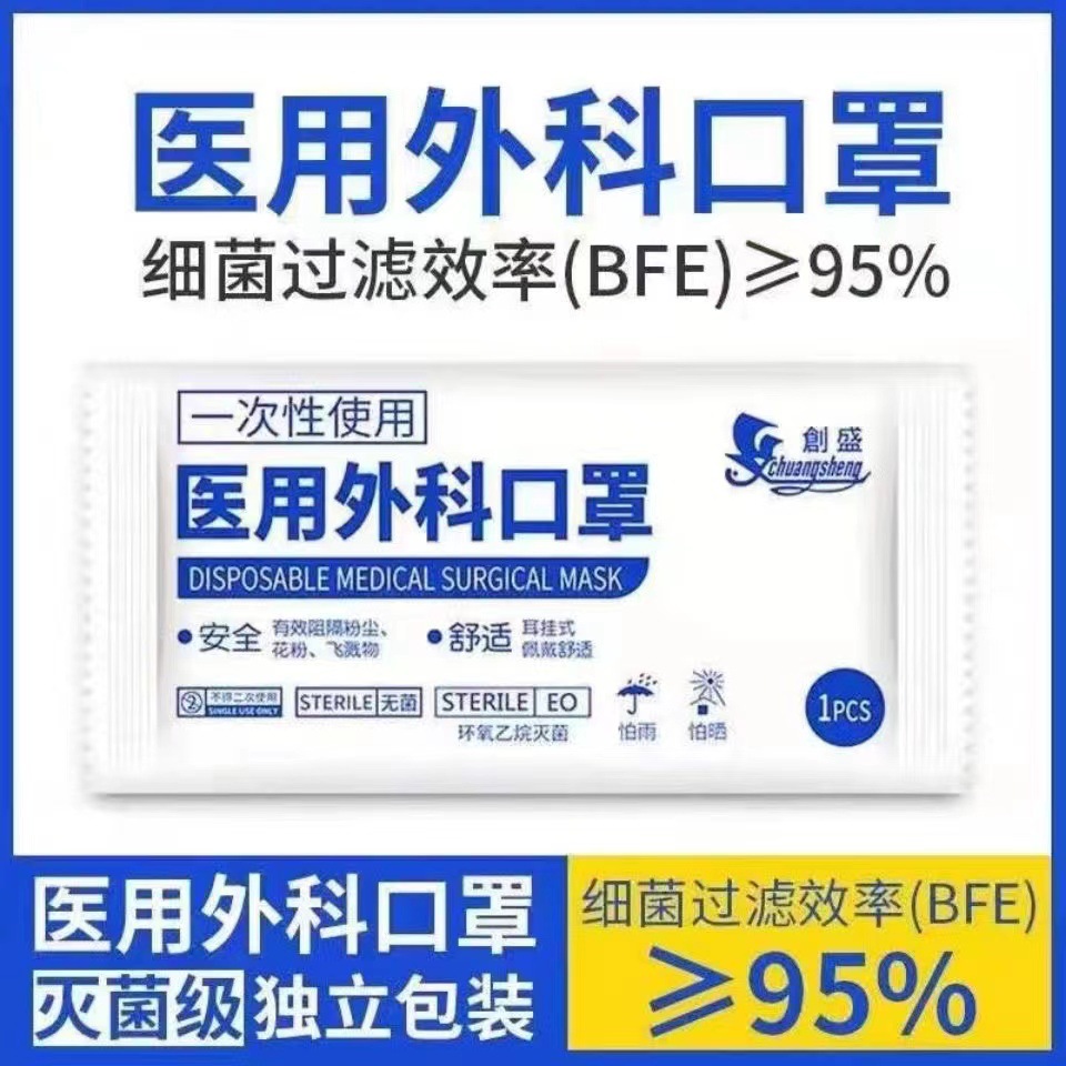 創盛医療用外科マスク使い捨て独立包装滅菌白色三層防勒耳飛沫卸売り