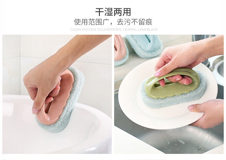 家庭用タイルクリーニングブラシ北欧キッチンハンドルスポンジワイプ多機能無地バスタブストーブたわしブラシ