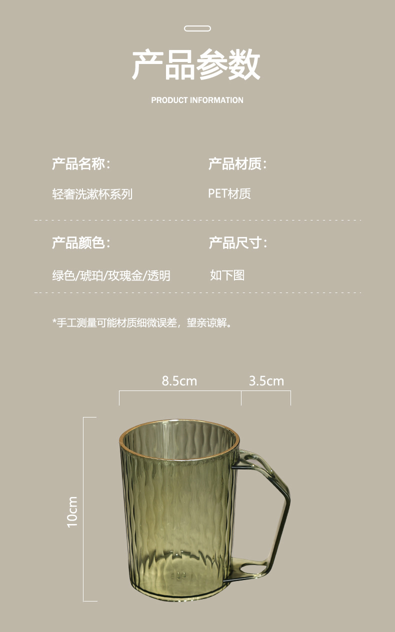 透明マウスウォッシュカップ(ゴールドカップ付き),ローズゴールドマウスウォッシュカップ(ゴールドカップ付き),琥珀マウスウォッシュカップ(金カップ付),緑のうがい薬カップ(金カップ付き)