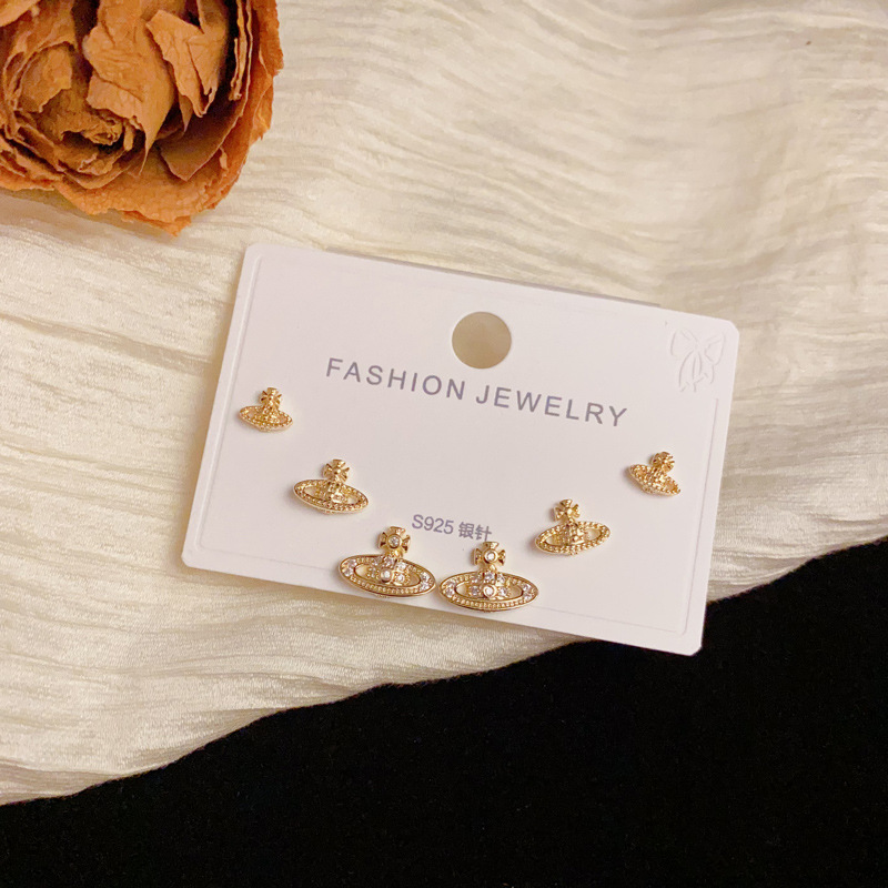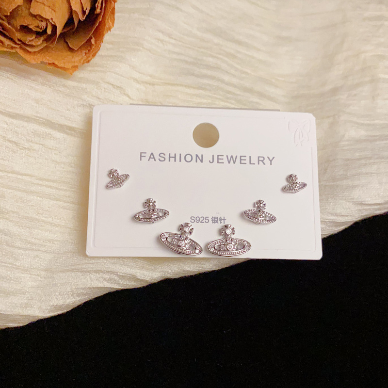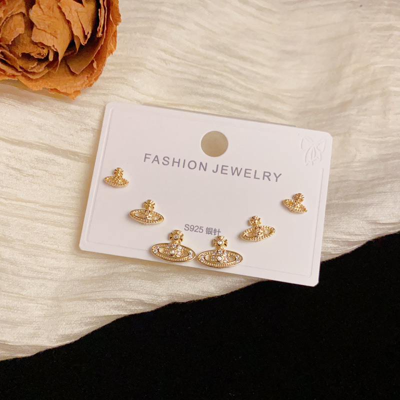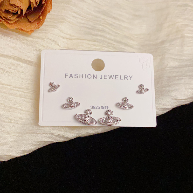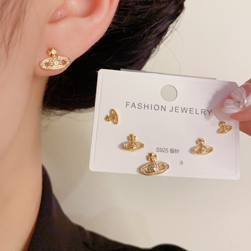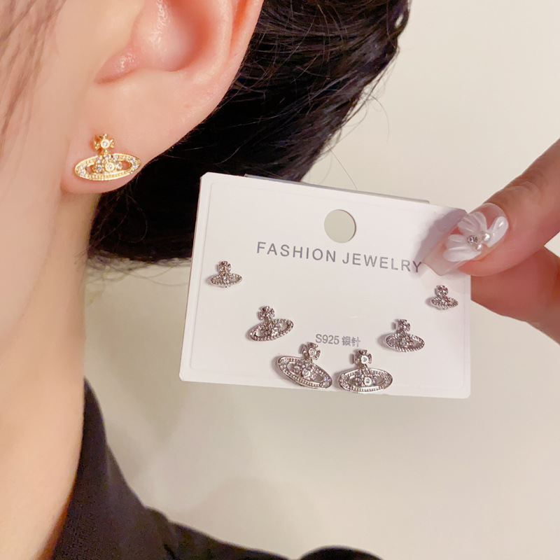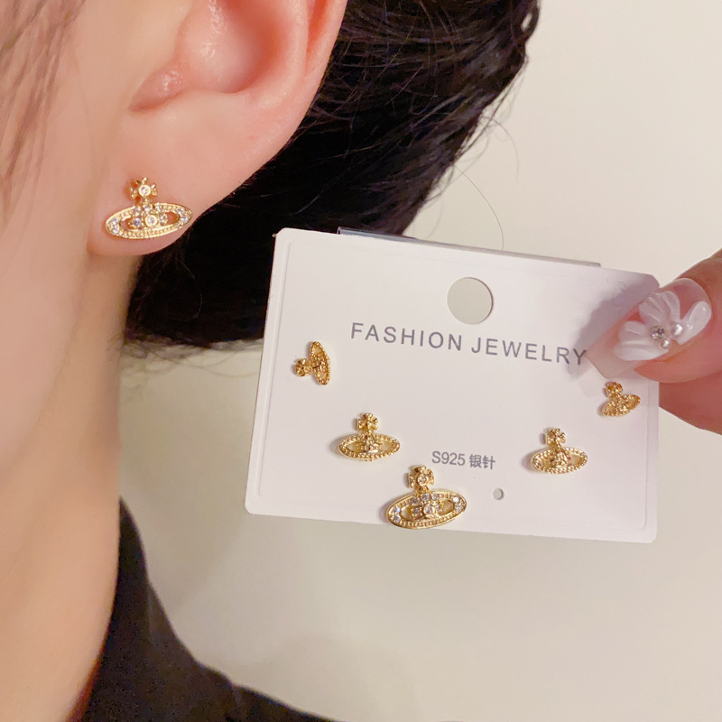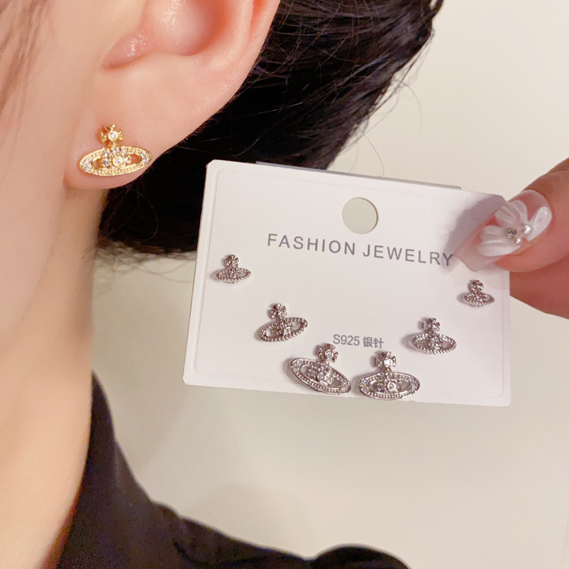 日韩轻奢微镶锆石土星三件套耳钉精致时尚百搭小巧高级感超闪耳环