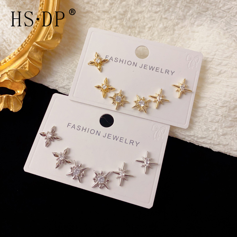 小众时尚简约镶钻金属芒星三件套耳钉气质轻奢百搭独特设计感耳环