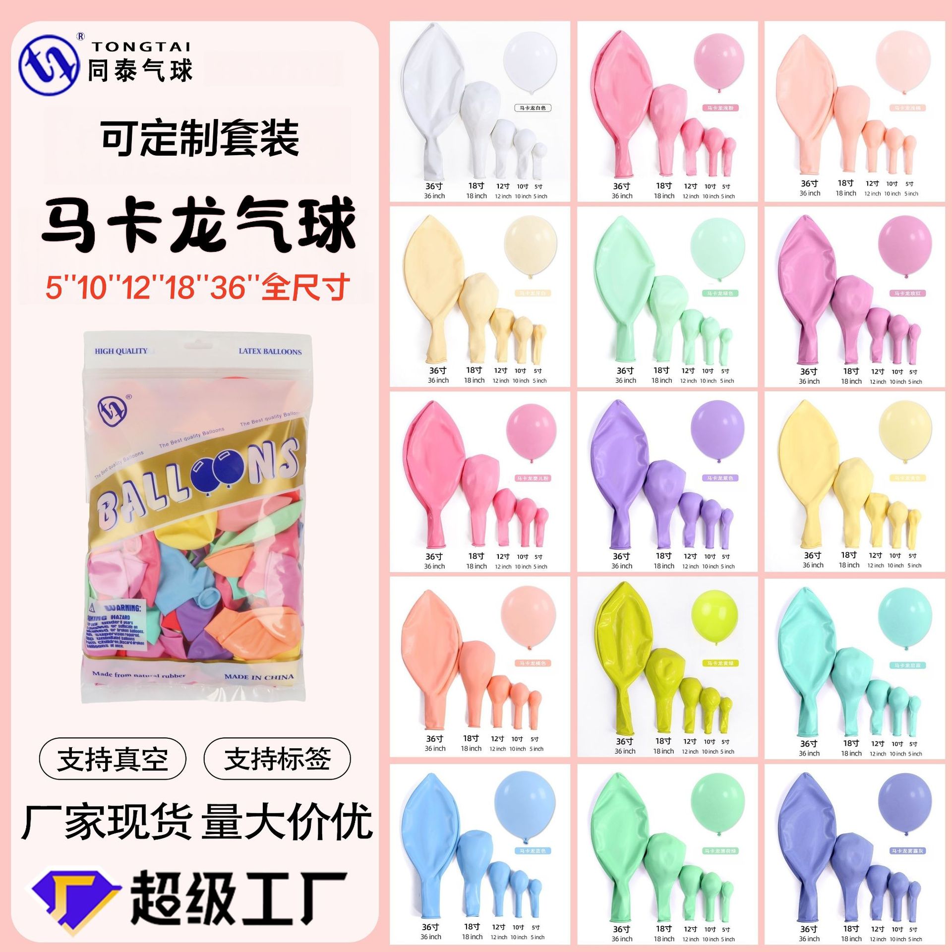 マカロン風船5インチ10インチ12インチ18インチ36インチマカロン色ラテックス風船キャンディー色亜光風船