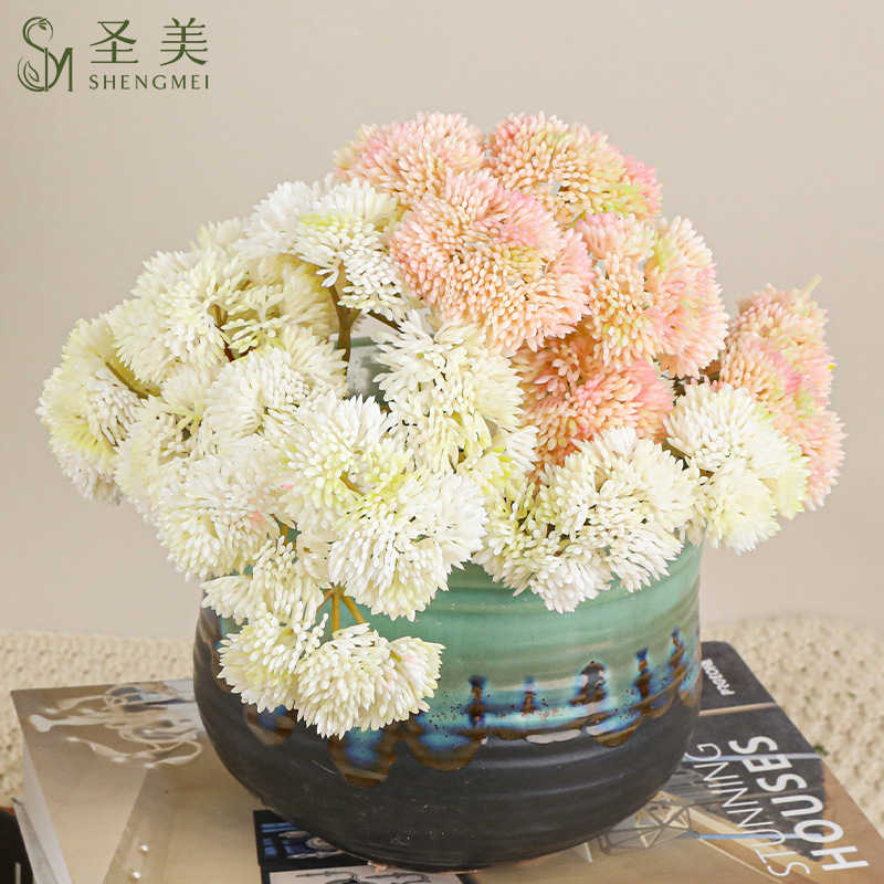 模造花3頭玉葱球造花家庭装飾タンポポ果家庭植物生け花配材プラスチック豆果