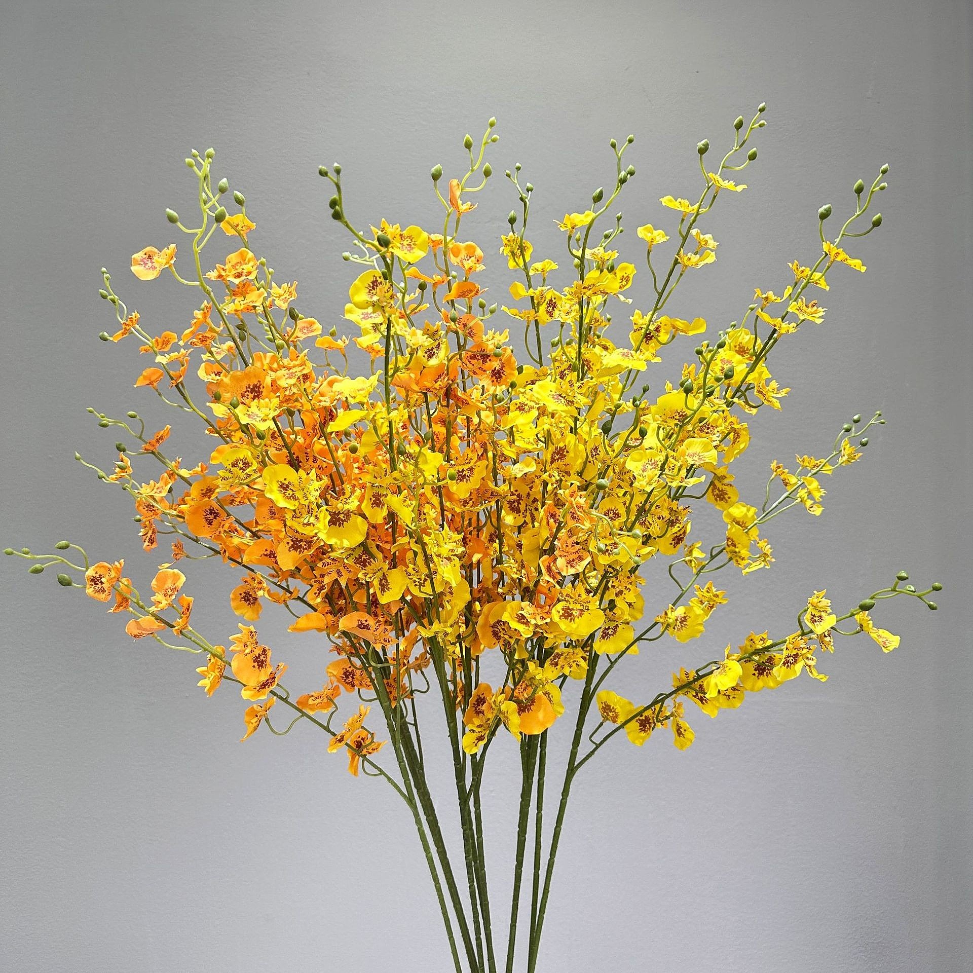 中式橙色橘色跳舞兰单枝仿真花文心兰样板房装饰婚庆插花花艺假花