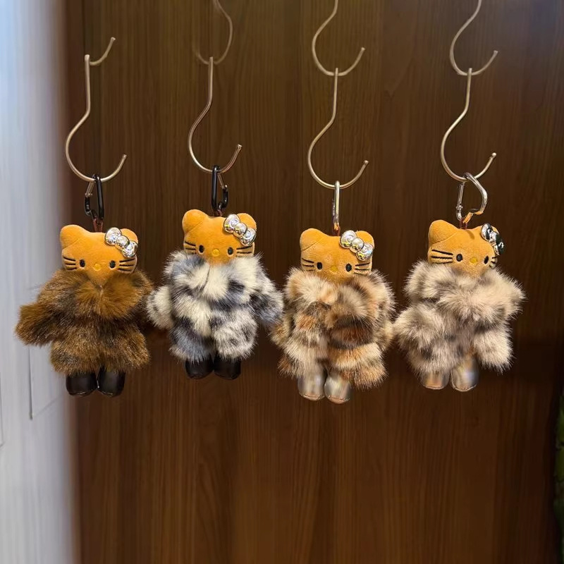 网红仿真皮草kt猫挂件可爱毛绒玩具公仔小猫咪包包挂饰玩偶钥匙扣
