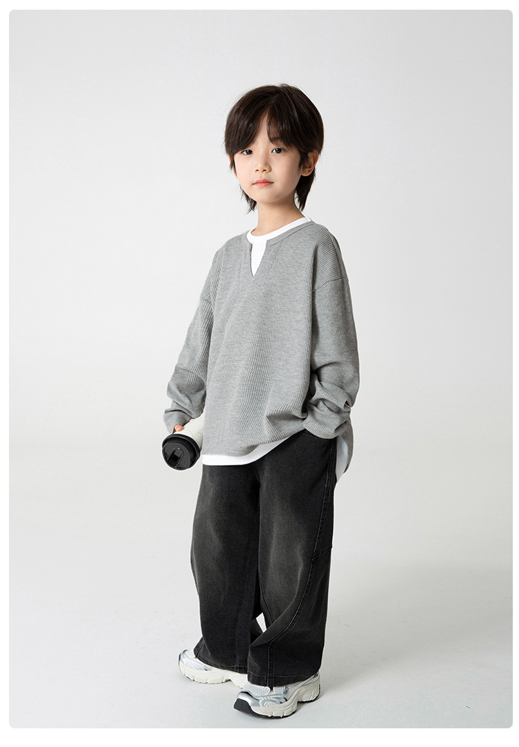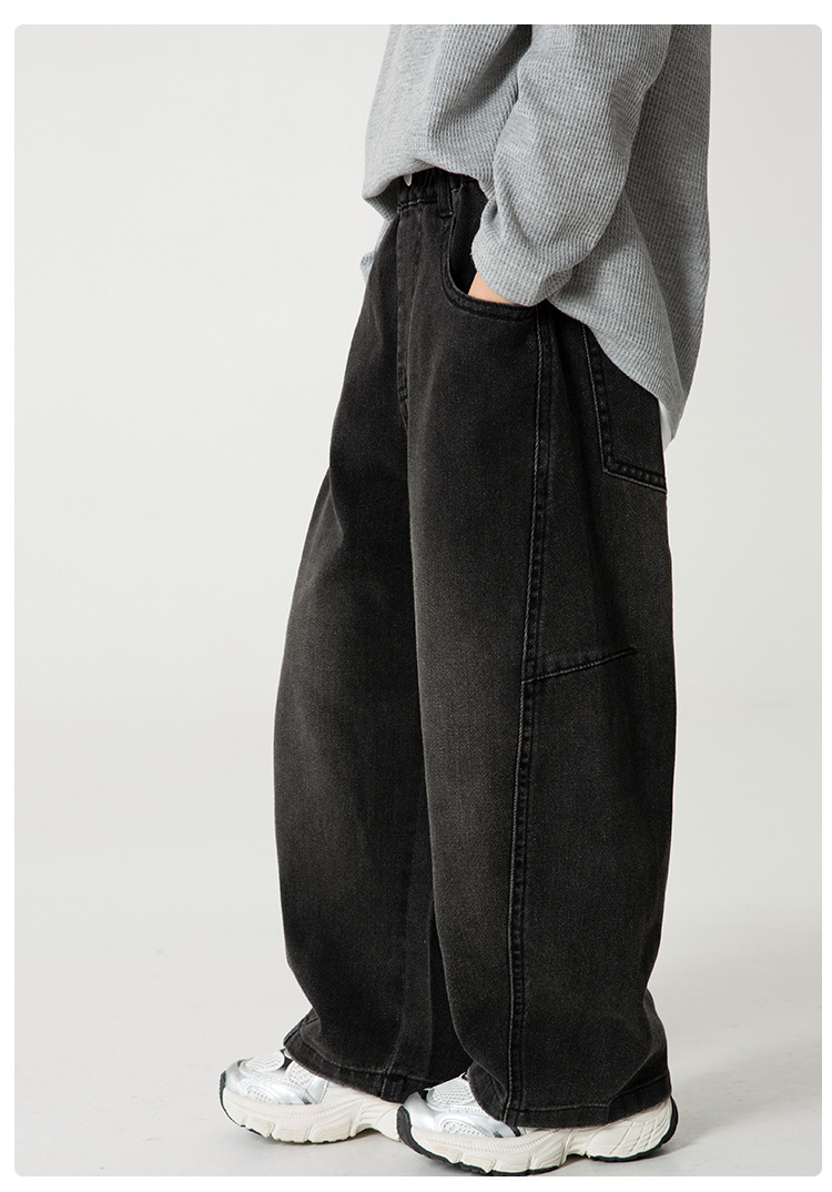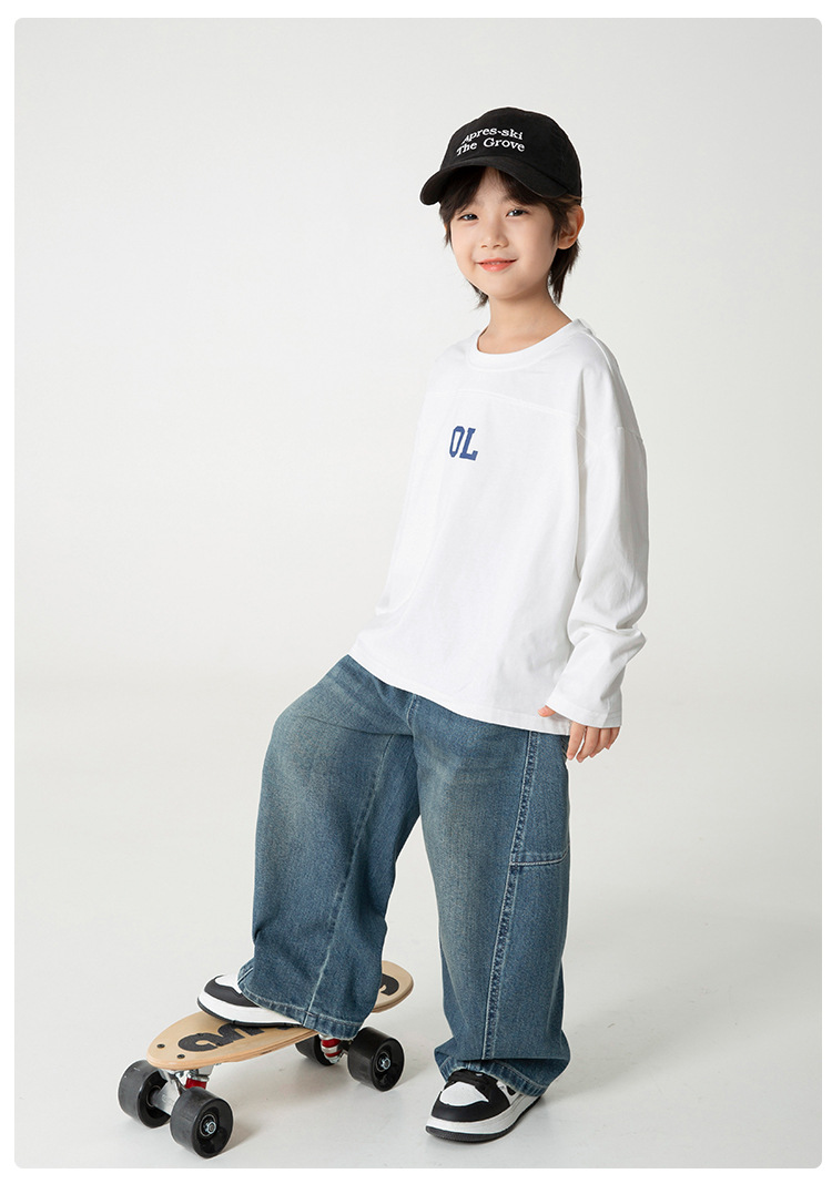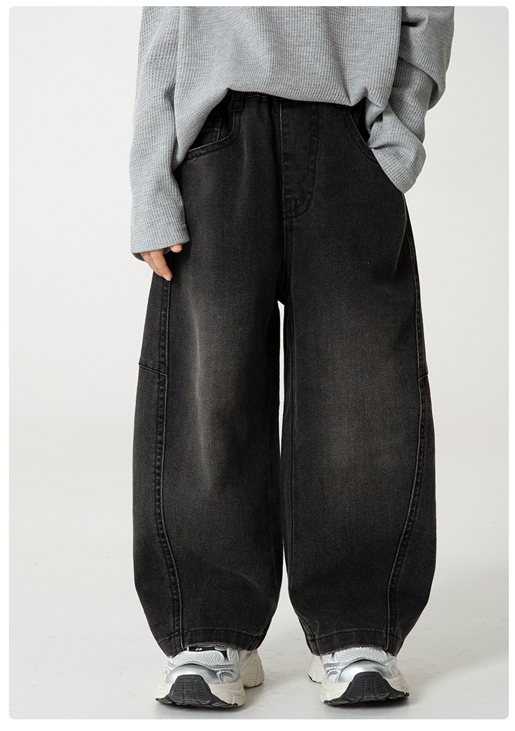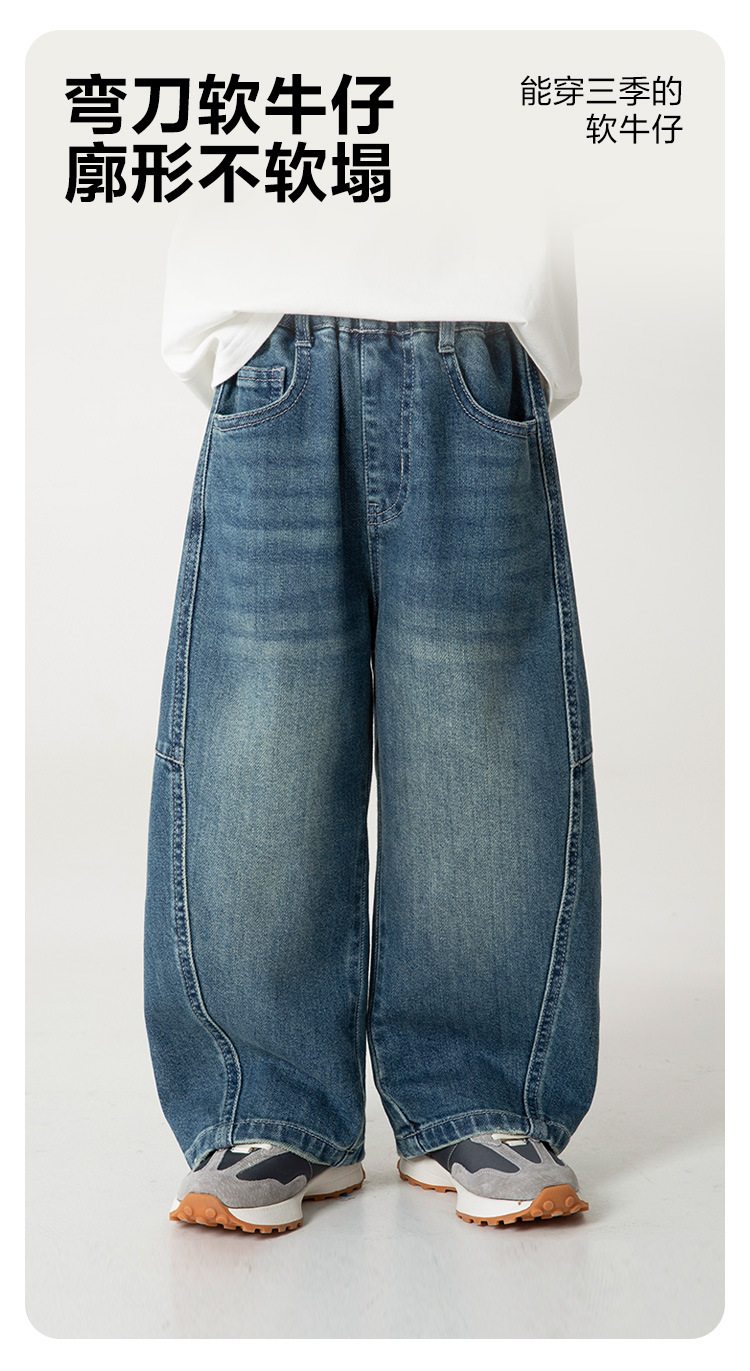 海麻家子供服2026春秋新作男の子春服ジーンズおしゃれなカーブパンツ大きい子供用ワイドパンツゆったり