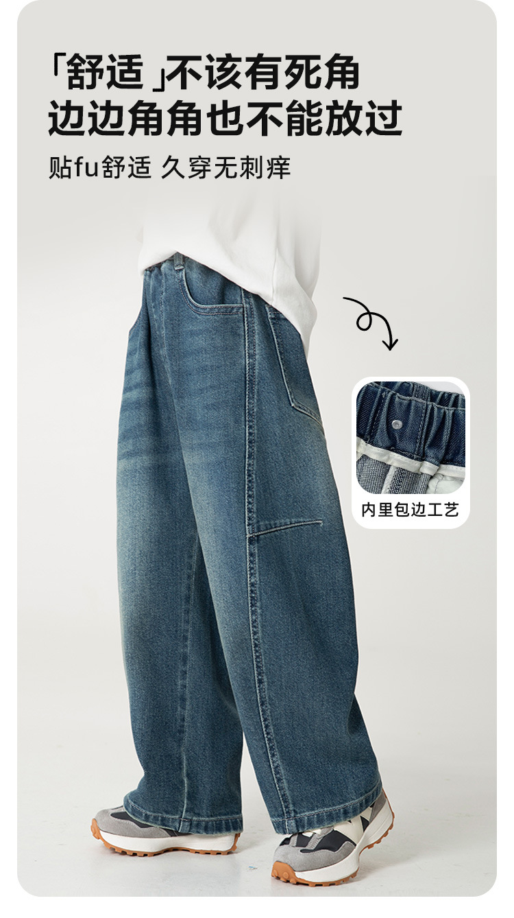 海妈家童装2025冬季新款男童加绒加厚冬装牛仔裤中大童宽松阔腿裤