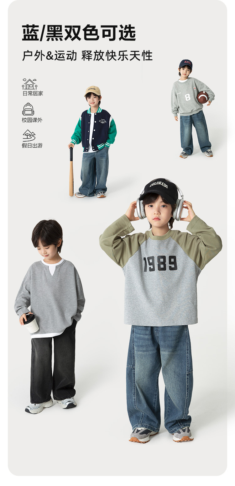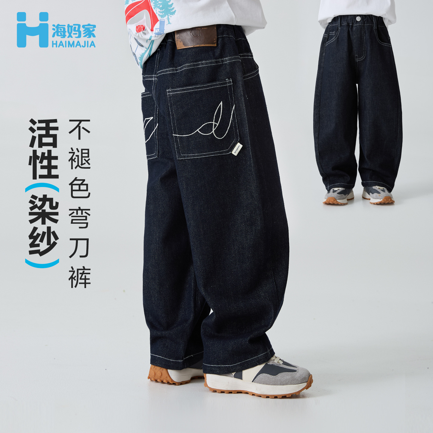 海妈家童装2025秋季新款男童秋装牛仔弯刀裤洋气阔腿裤韩版中大童