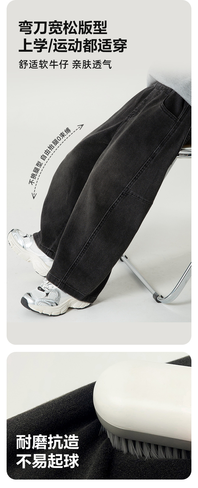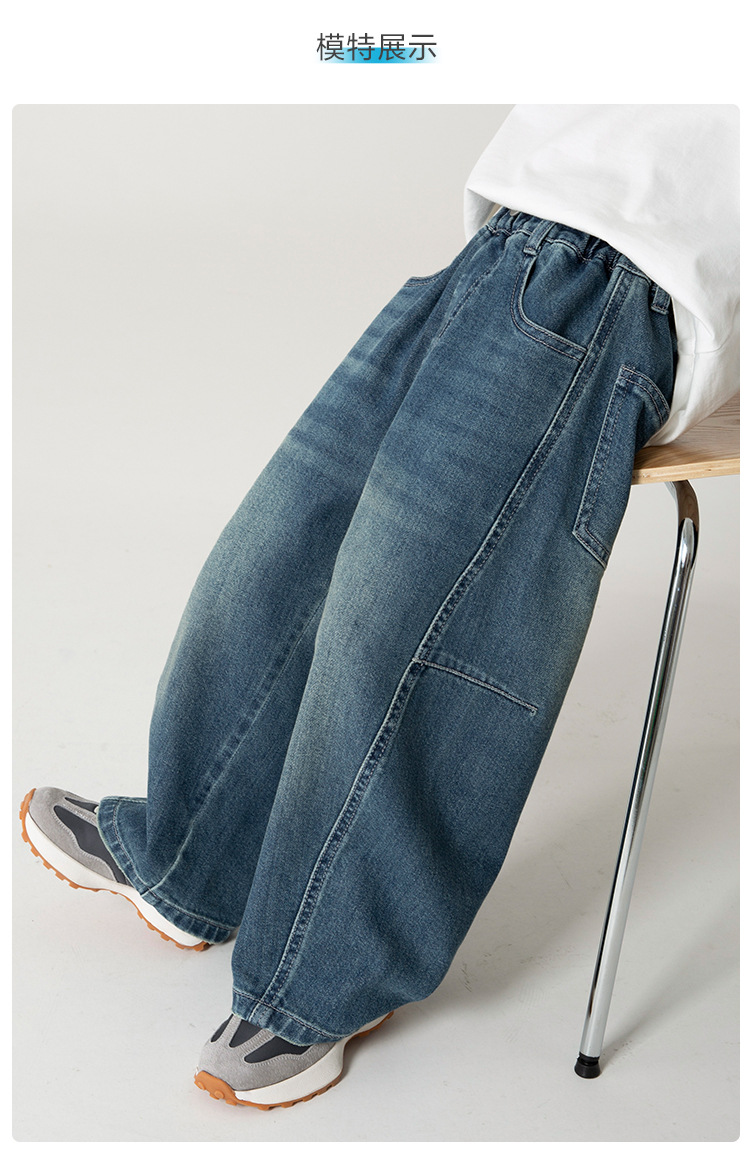 海妈家童装2026春季新款男童水洗潮范牛仔裤洋气阔腿裤宽松中大童