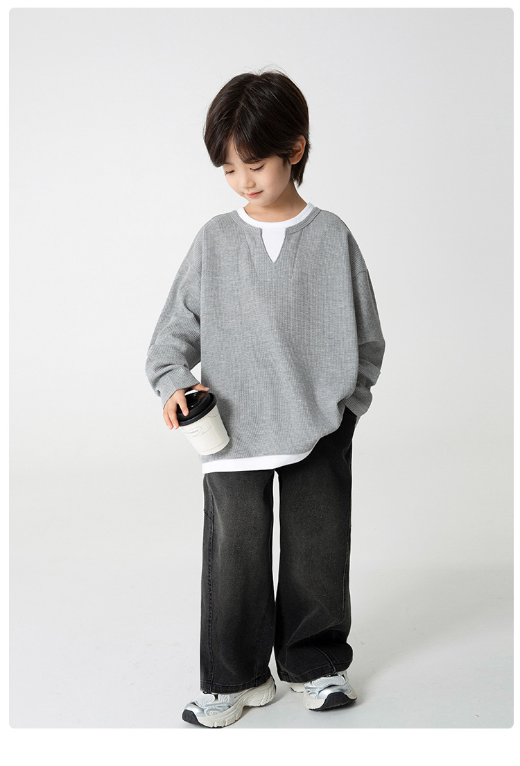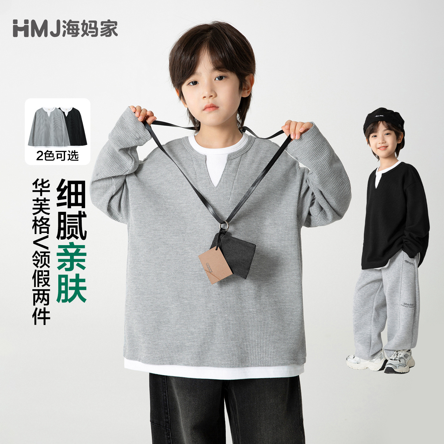 海麻家子供服 春2026新作 男の子 韓国風 長袖Tシャツ フェイクツーピース おしゃれ 春服 子供服