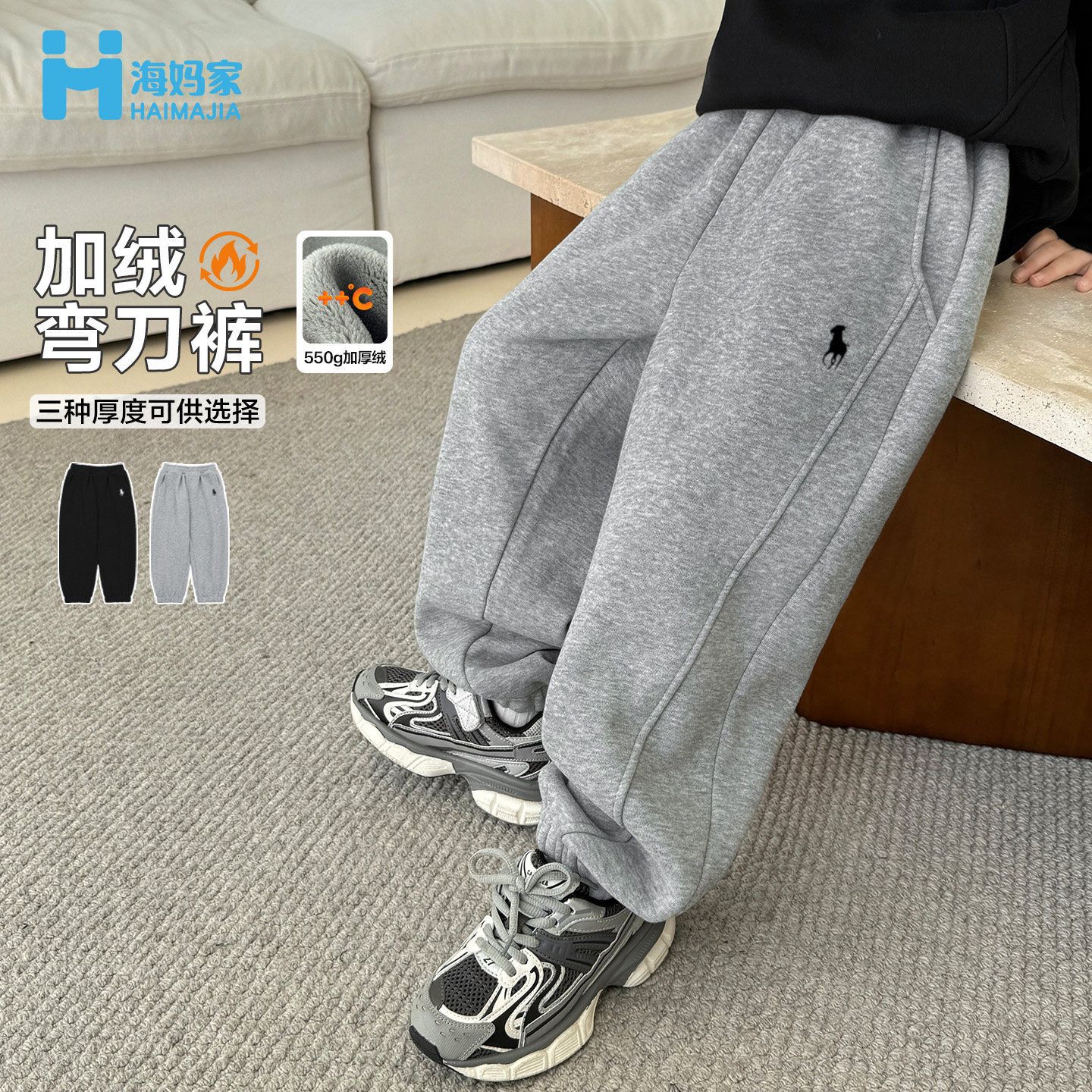 海馬家子供服男の子用裏起毛パンツ厚手スポーツパンツトレンドブランド新作冬服スウェットパンツ冬用子供服女の子用