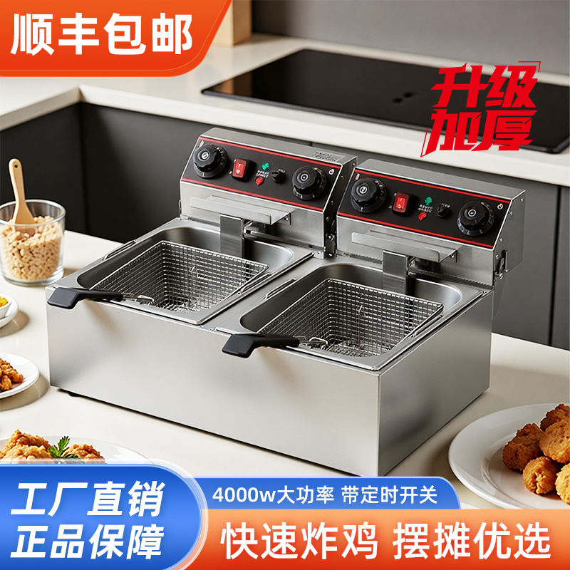 電気フライヤー縦型業務用大容量串揚げ二槽電気フライヤー機鶏肉屋台専用揚げ物フライヤー