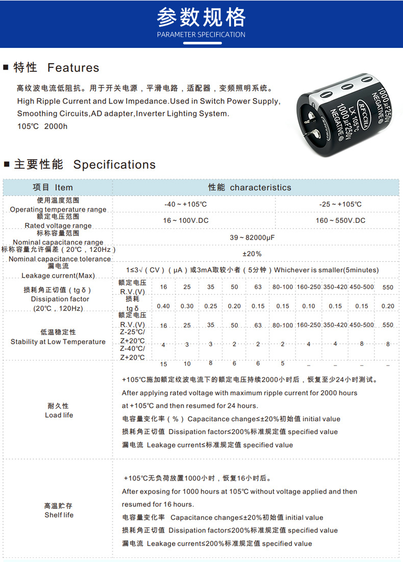 牛角型電解コンデンサ 450V1000uF 35x70 高周波低抵抗 5000時間長寿命電解コンデンサ