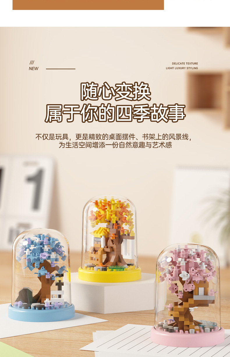 【批发代发】四季樱花树屋积木兼容乐高儿童益智玩具桌面摆件礼物