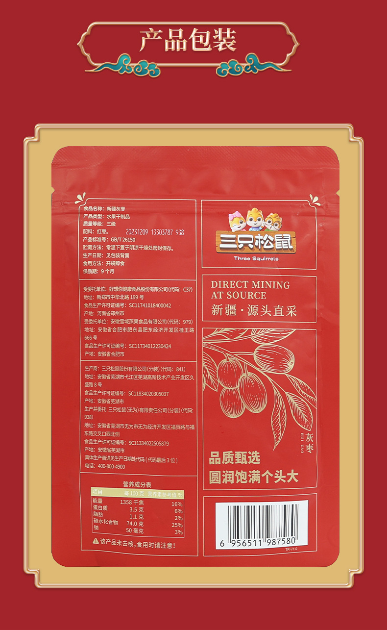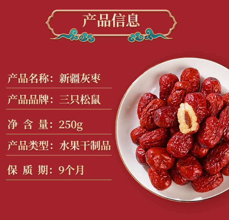 批发三只松鼠新疆灰枣250g新鲜红枣干新疆特产免洗休闲零食包邮