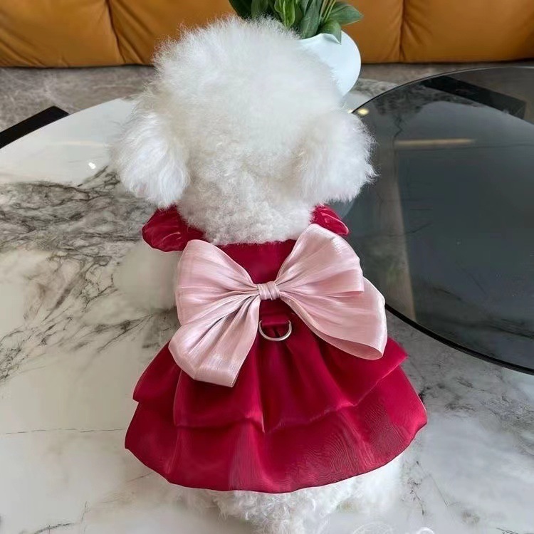 ペット春夏新作牽引プリンセススイートチュチュスカート小型犬パンダ猫リボンドレス薄手