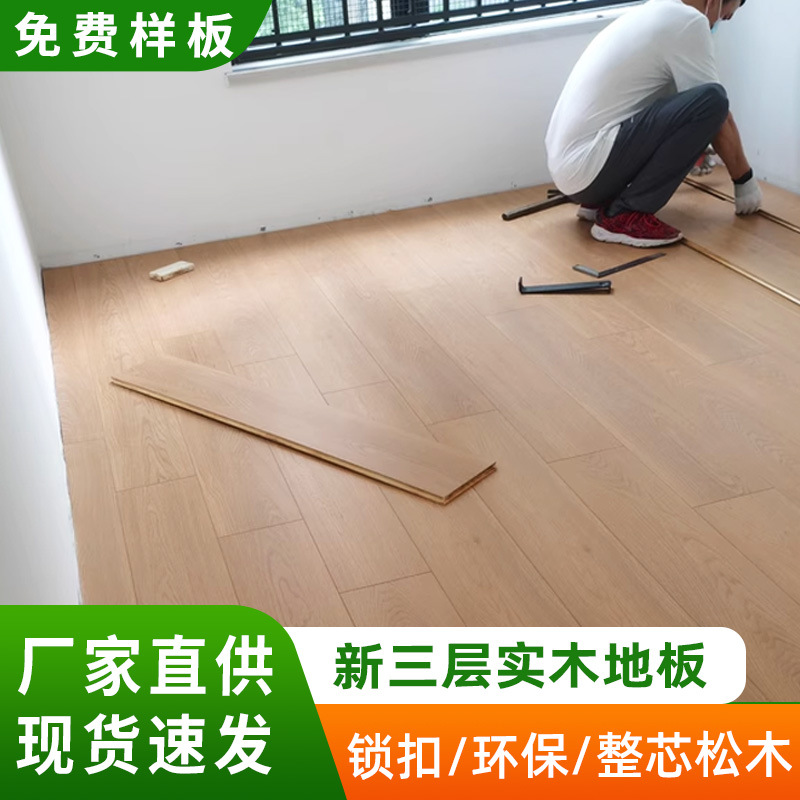 新三层实木地板家用耐磨锁扣原木纹本色工程商用木地板实木复合