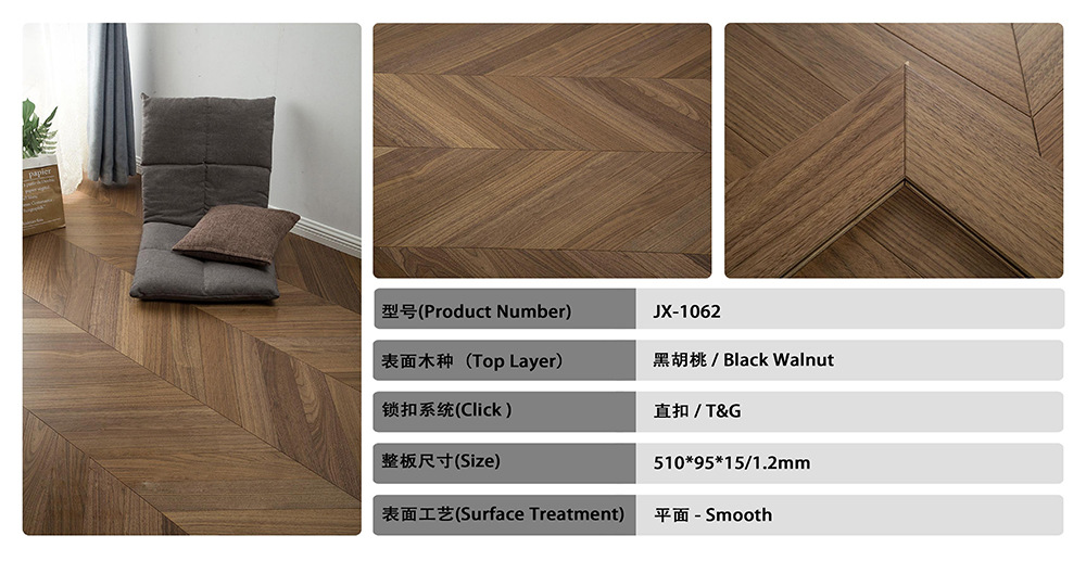 多層無垢材フローリングブラックウォールナットフィッシュボーンフローリングJXシリーズゲストレストラン寝室ヨーロッパアメリカンスタイルフローリング