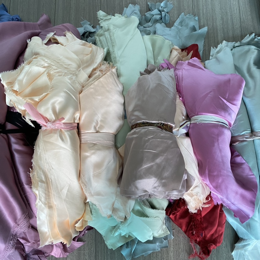 真丝素绉缎(100%桑蚕丝),大概19-21姆米左右居多,没有逐一计算,缎面有光泽、手感柔软,面料垂坠且透气,亲肤性强