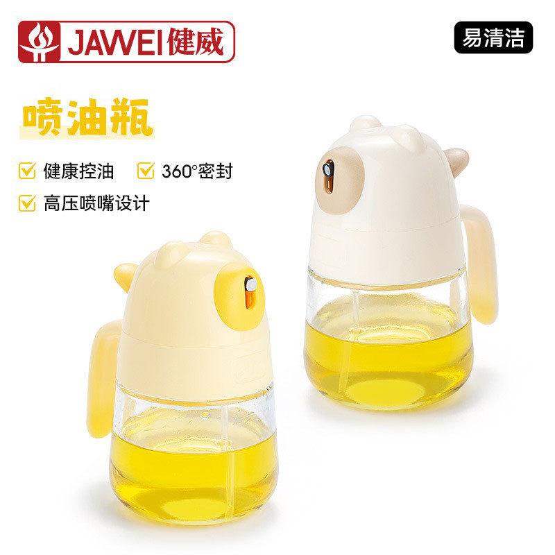 专利现货油壶新款家用卡通厨房食品级加厚玻璃雾化按压喷油壶定制