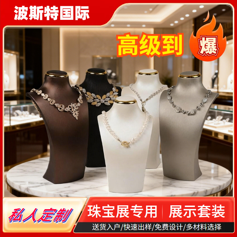 PU拉丝皮高级感人像脖子项链展示架珠宝展示道具饰品首饰展示架