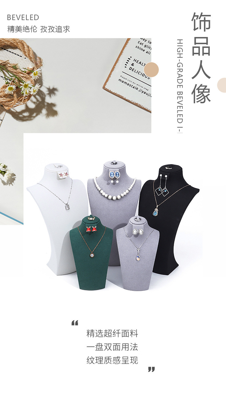 ハイエンドのポートレートネックモデルジュエリーディスプレイ小道具起毛レザーネックレススタンドジュエリーディスプレイテーブル