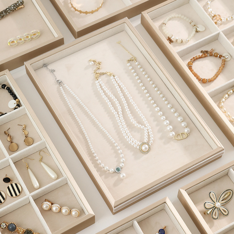 ジュエリートレイ 蓋付き 収納引き出し ブレスレットトレイ ネックレス ヘアピン イヤリング ブレスレット ジュエリーディスプレイトレイ ベージュ