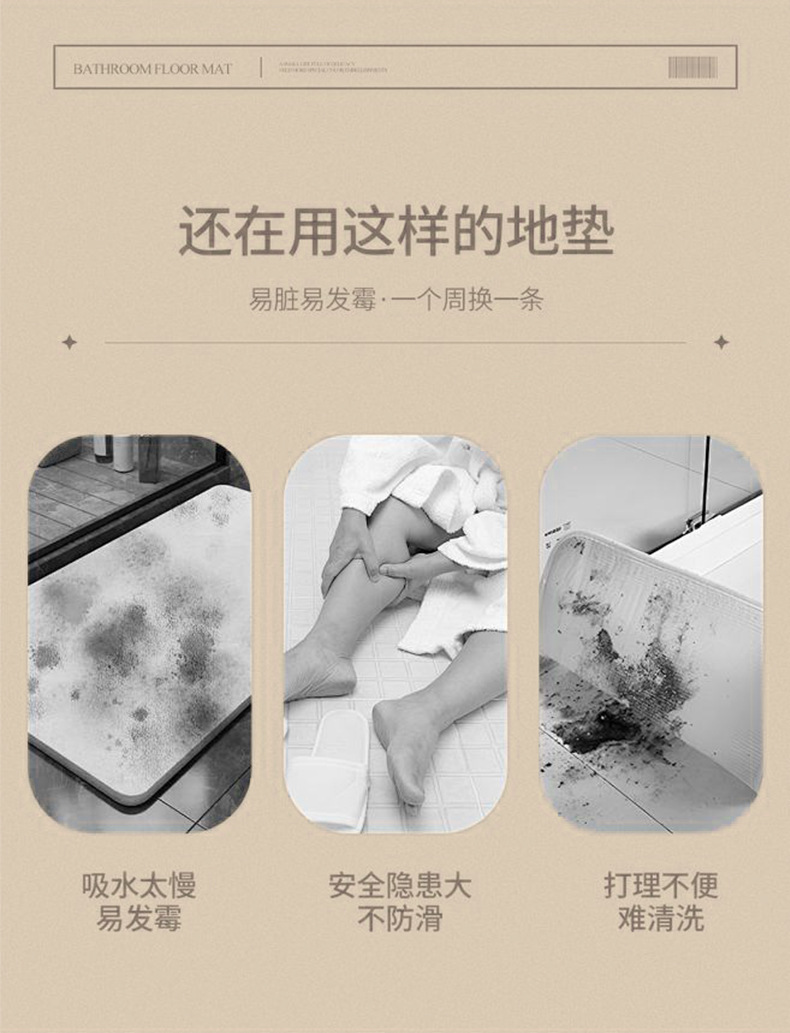 浴室地垫卫生间门口吸水速干门垫家用干湿分离耐脏硅藻泥满铺脚垫