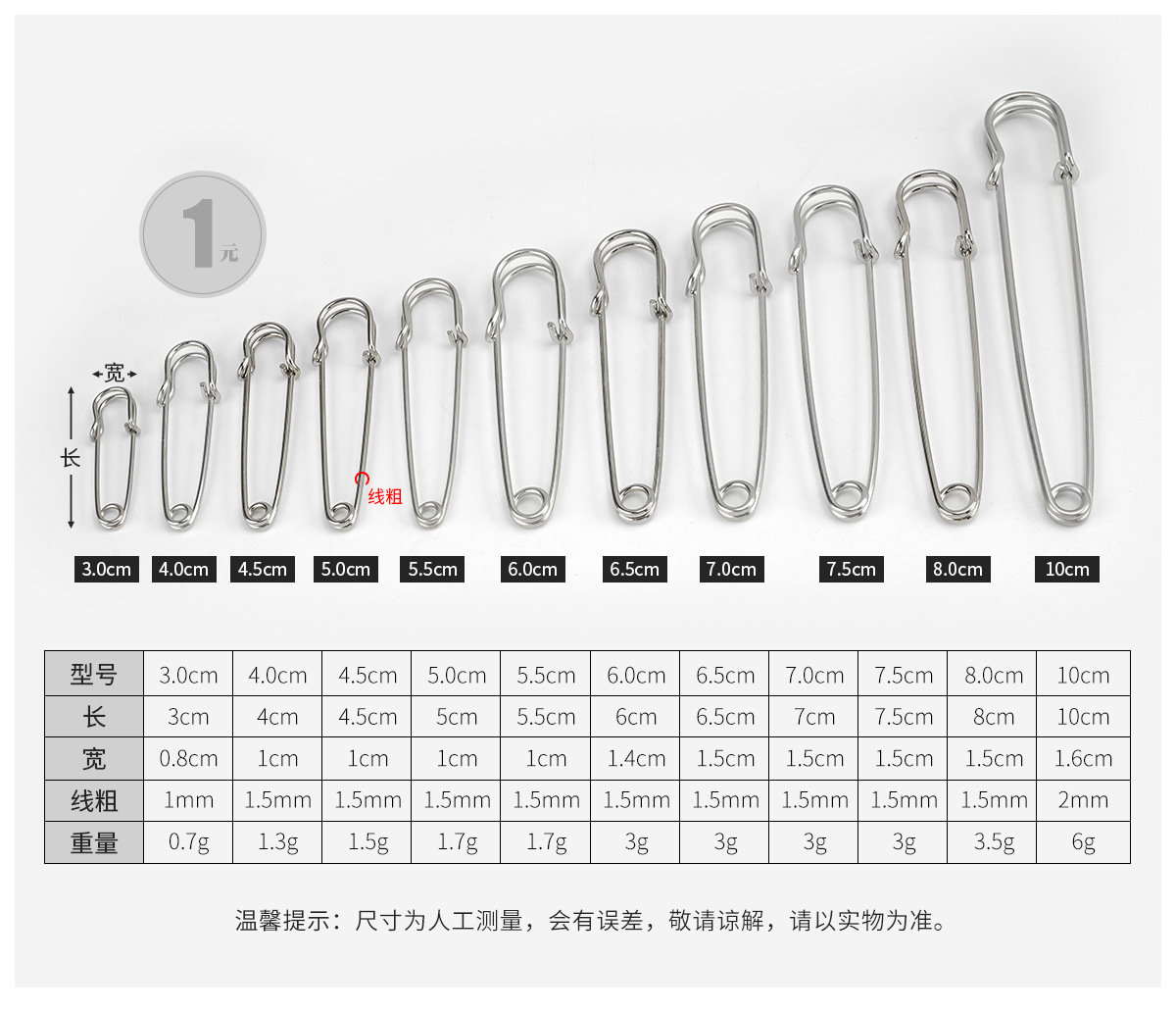 大ピン:3.0cm(シルバーホワイト),大ピン:3.0cm(ライトゴールド),大ピン:4.0cm(シルバーホワイト),大ピン:4.0cm(ライトゴールド),大ピン:5.0cm(シルバーホワイト),大ピン:5.0cm(ライトゴールド),大ピン:6.0cm(シルバーホワイト),大ピン:6.0cm(ライトゴールド),大ピン:6.5cm(シルバーホワイト),大ピン:6.5cm(ライトゴールド),大ピン:7.0cm(シルバーホワイト),大ピン:7.0cm(ライトゴールド),大ピン:7.5cm(シルバーホワイト),大ピン:7.5cm(ライトゴールド),大ピン:10.0cm(シルバーホワイト),大ピン:10.0cm(ライトゴールド),吊り下げメッキ大ピン:10.0cm(シルバーホワイト),大型吊りメッキピン:10.0cm(ライトゴールド)