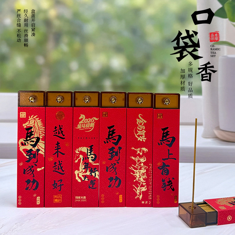 马到成功口袋香盒包装10.5cm线香家用香檀香礼盒包装带香插孔香盒