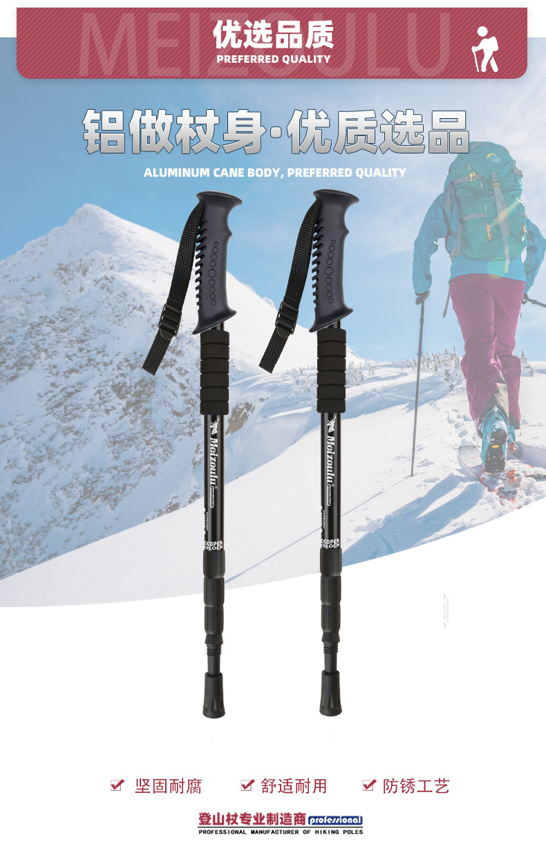 【工厂】跨境登山杖手杖滑雪超轻伸缩折叠徒步杆棍拐杖爬山铝合金