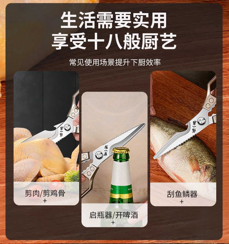 亚马逊热销厨房剪刀强力鸡骨剪特大号鸡鸭鹅骨头专用多功能食物剪