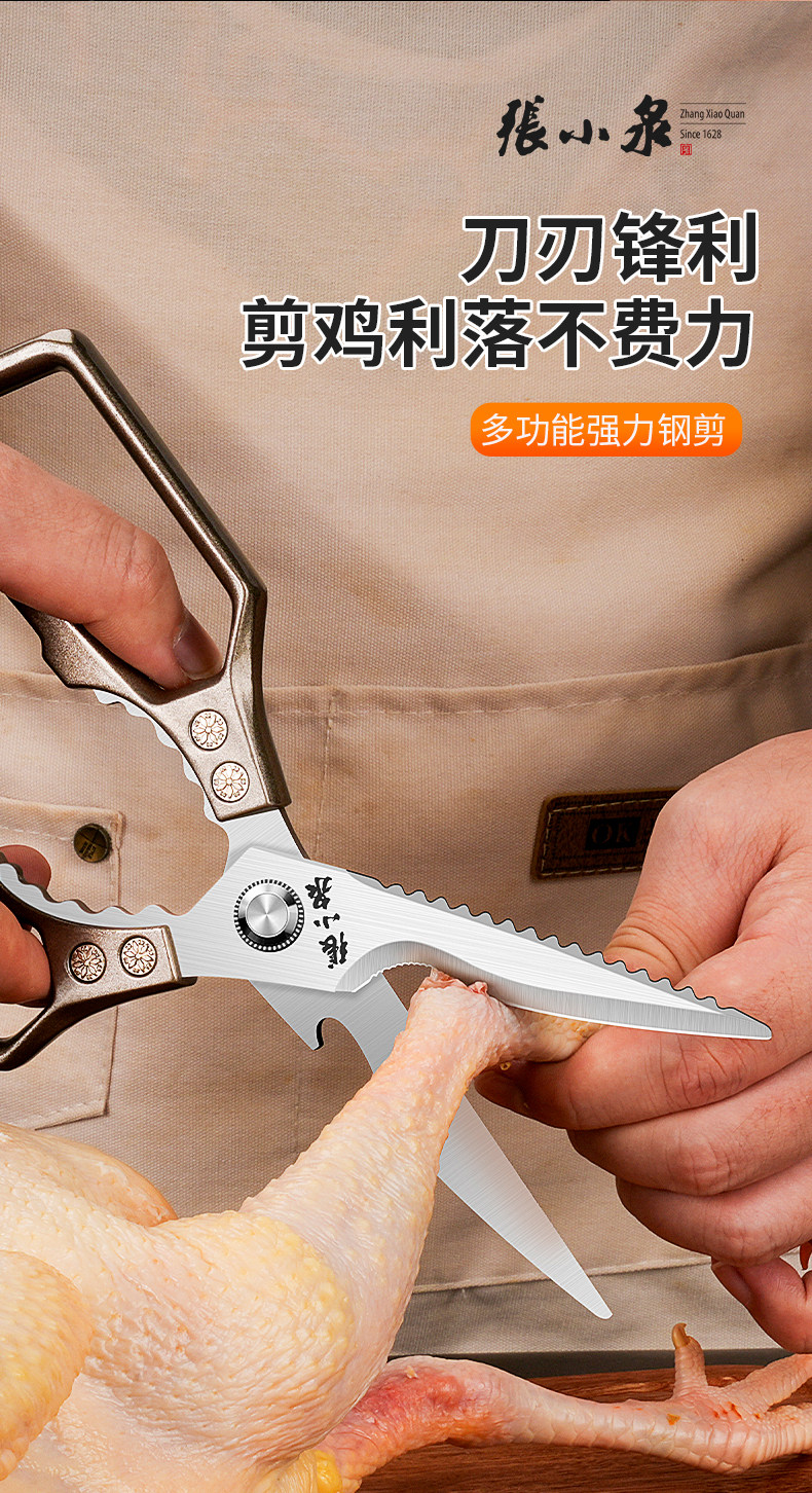 張小泉厨房ハサミ家庭用ステンレス強力骨切り専用鶏骨多機能焼肉食品はさみ