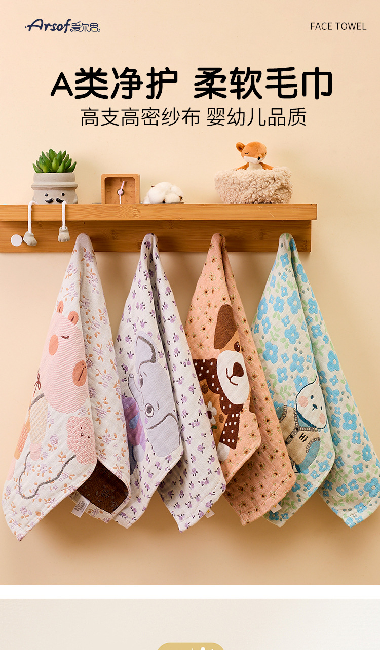 クラスA 4層ガーゼ児童洗顔タオル家庭用吸水毛速乾赤ちゃん唾液タオル卸売り