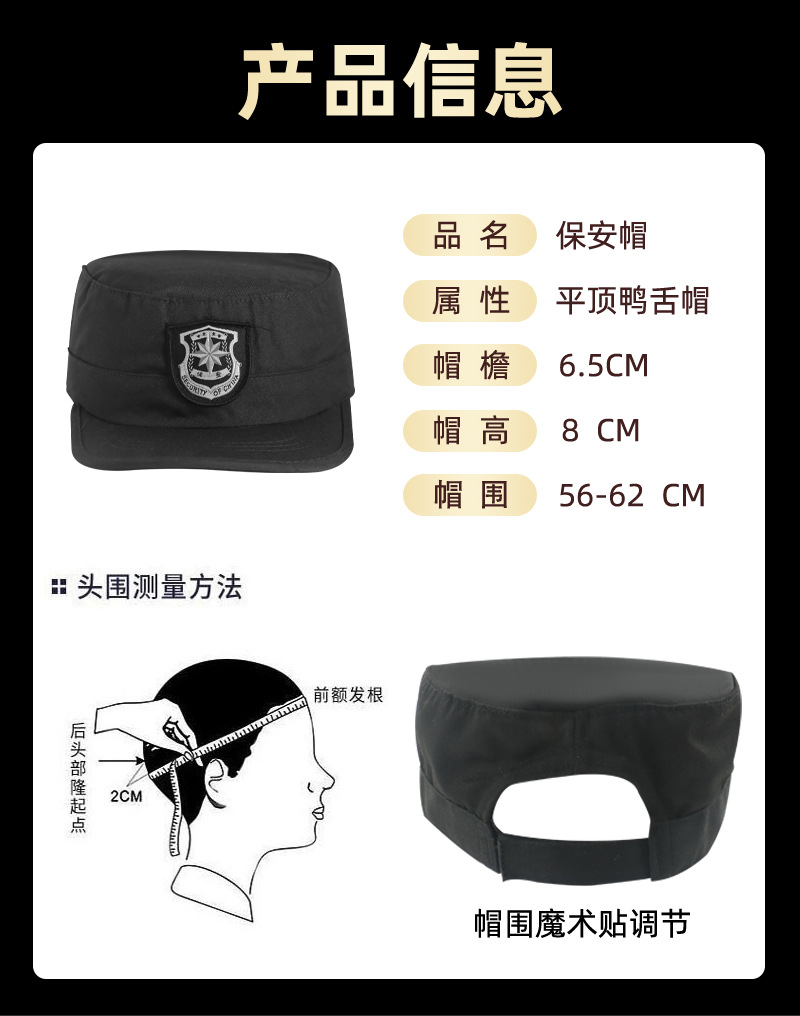保安帽子男款新式执勤作训工作帽通用门卫正品高级春秋安保可调节