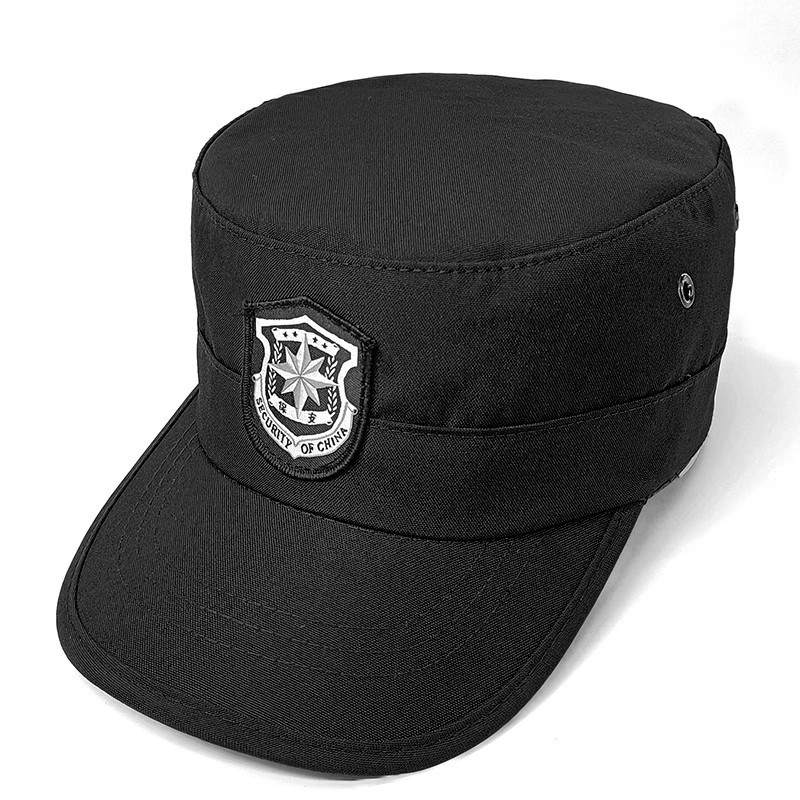 保安帽夏のメッシュ通気性不動産門衛帽黒色平頂警備勤務帽は保安帽子を調節できる