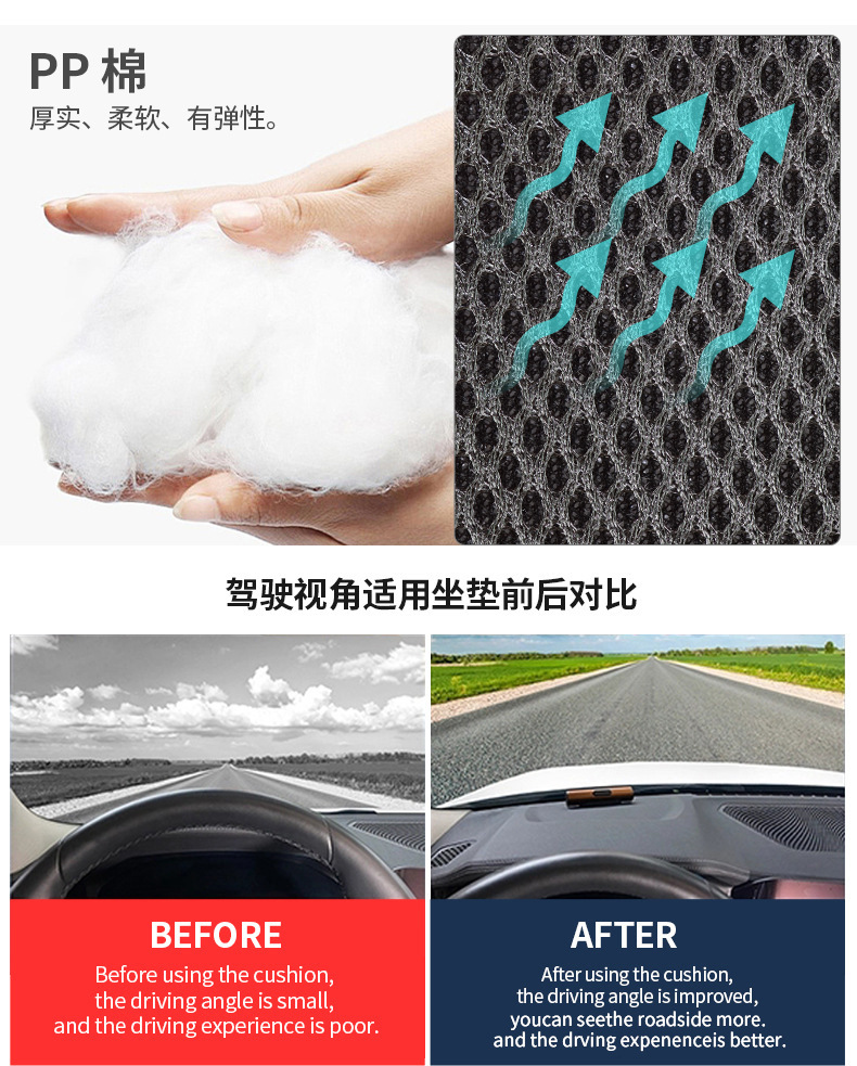 国境を越えた売れ筋運転クッション、運転免許試験、運転学習、運転練習用クッション、シート高さクッション、傾斜クッション工場