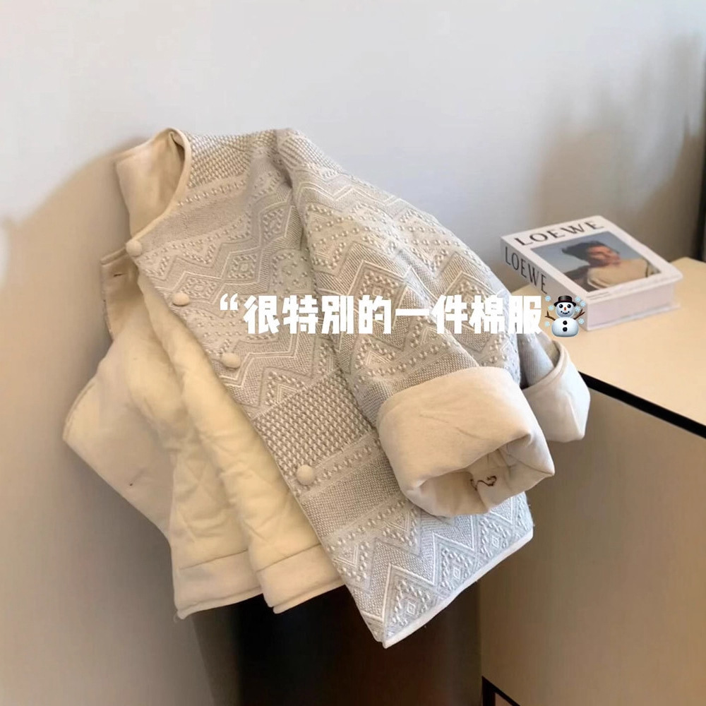 重工菱格花纹刺绣圆领棉服女冬季2025新款高级感气质宽松保暖外套