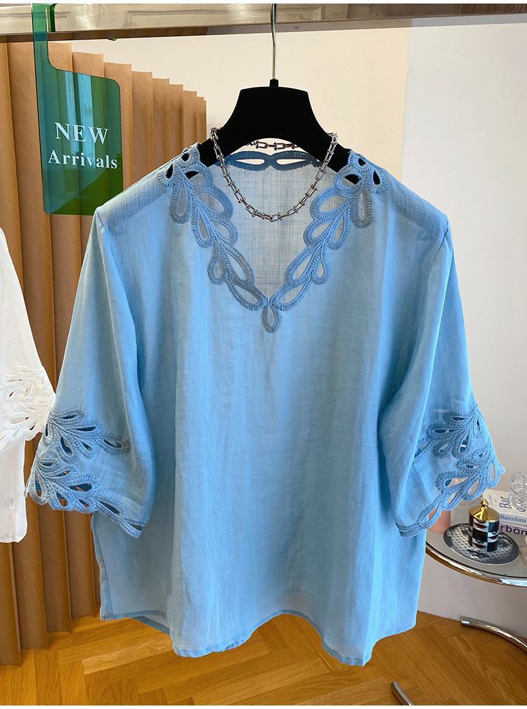 貿易輸出オリジナルシングルレディース夏2025新しいスタイルルーズユニークな美しいブルー外国風多用途シャツ半袖シャツ