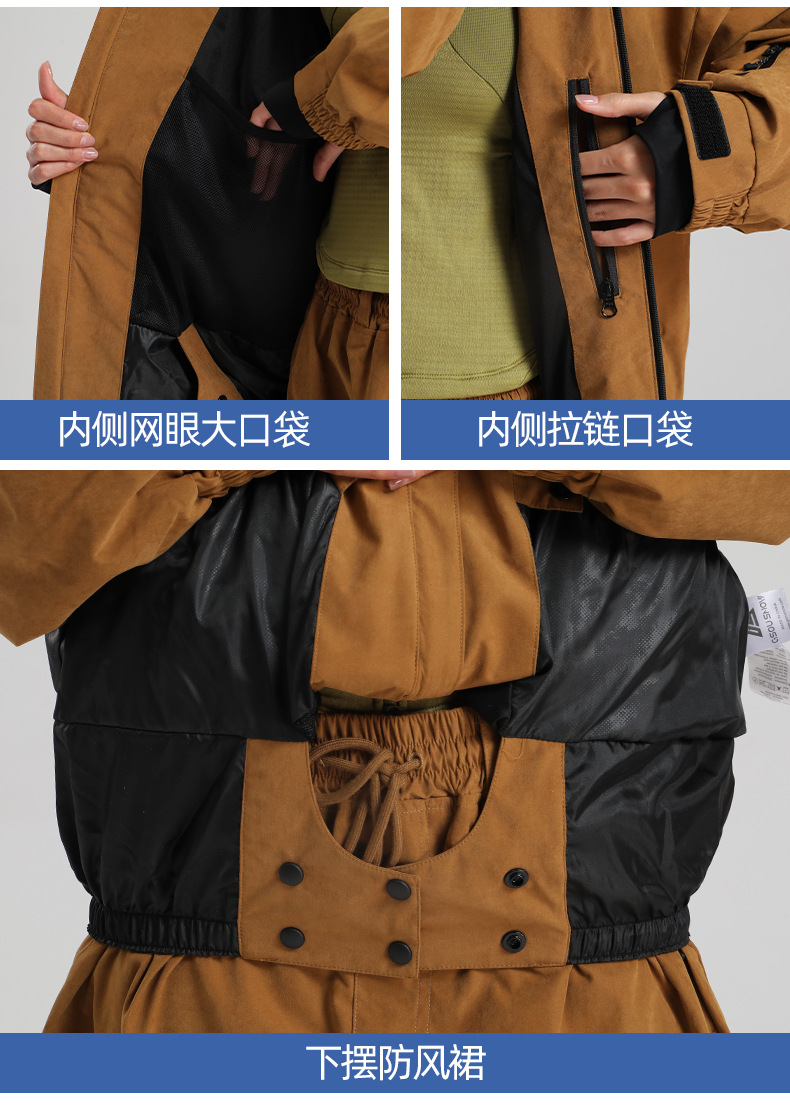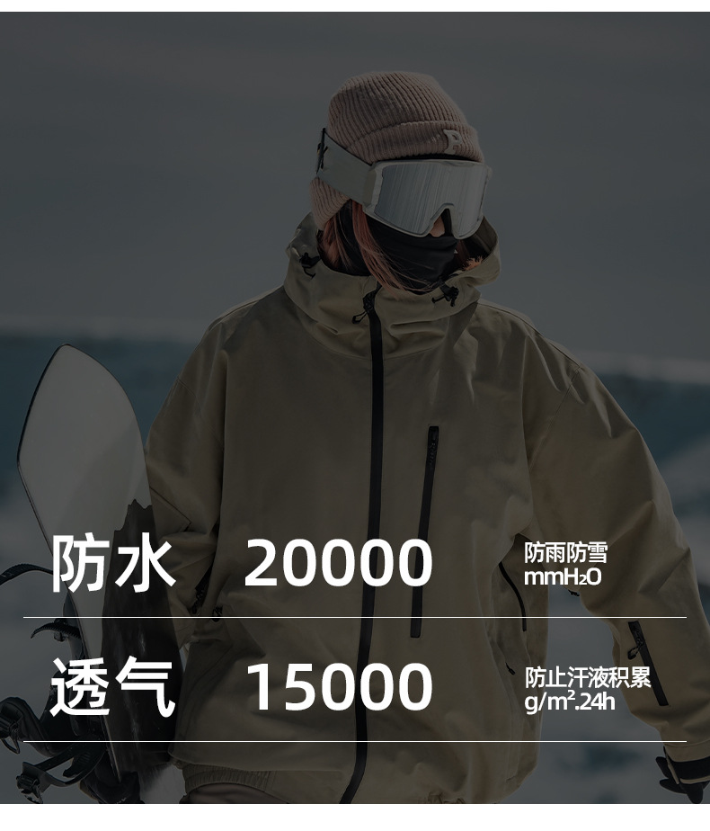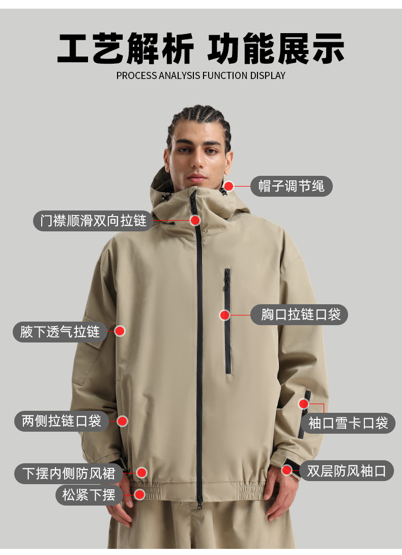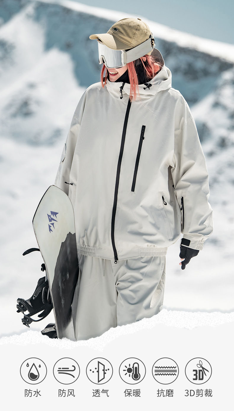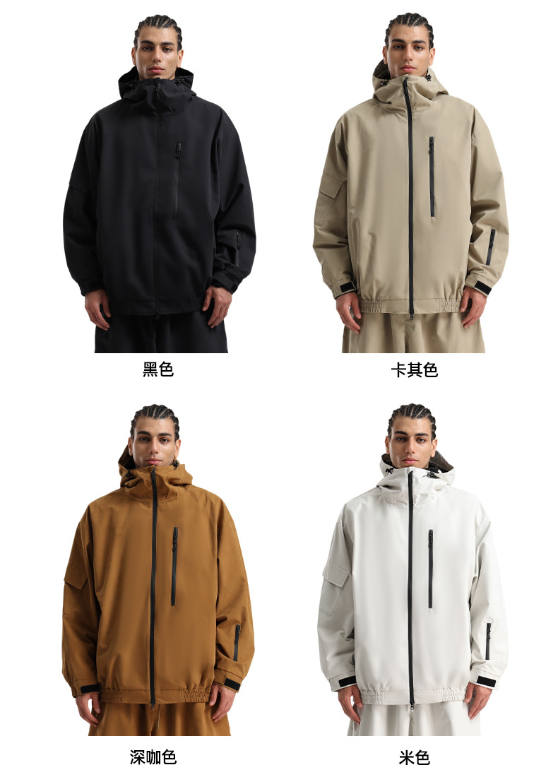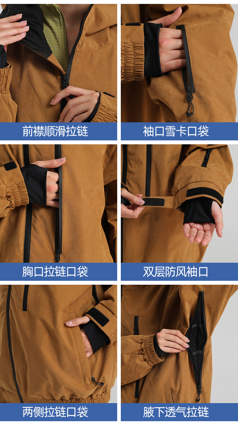 新款滑雪服男士宽松单板防风防水透气绒面料工装外贸滑雪衣女外套