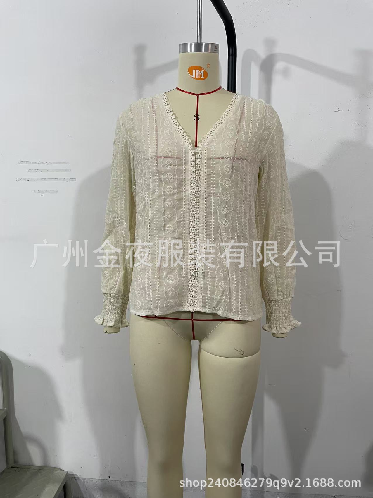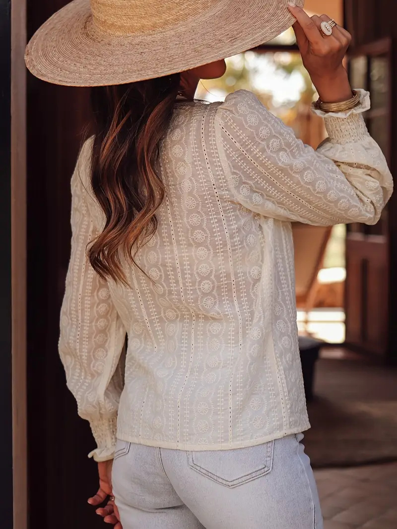 2025欧美跨境外贸女装优雅通勤气质镂空蕾丝花边拼接长袖衬衫衬衣