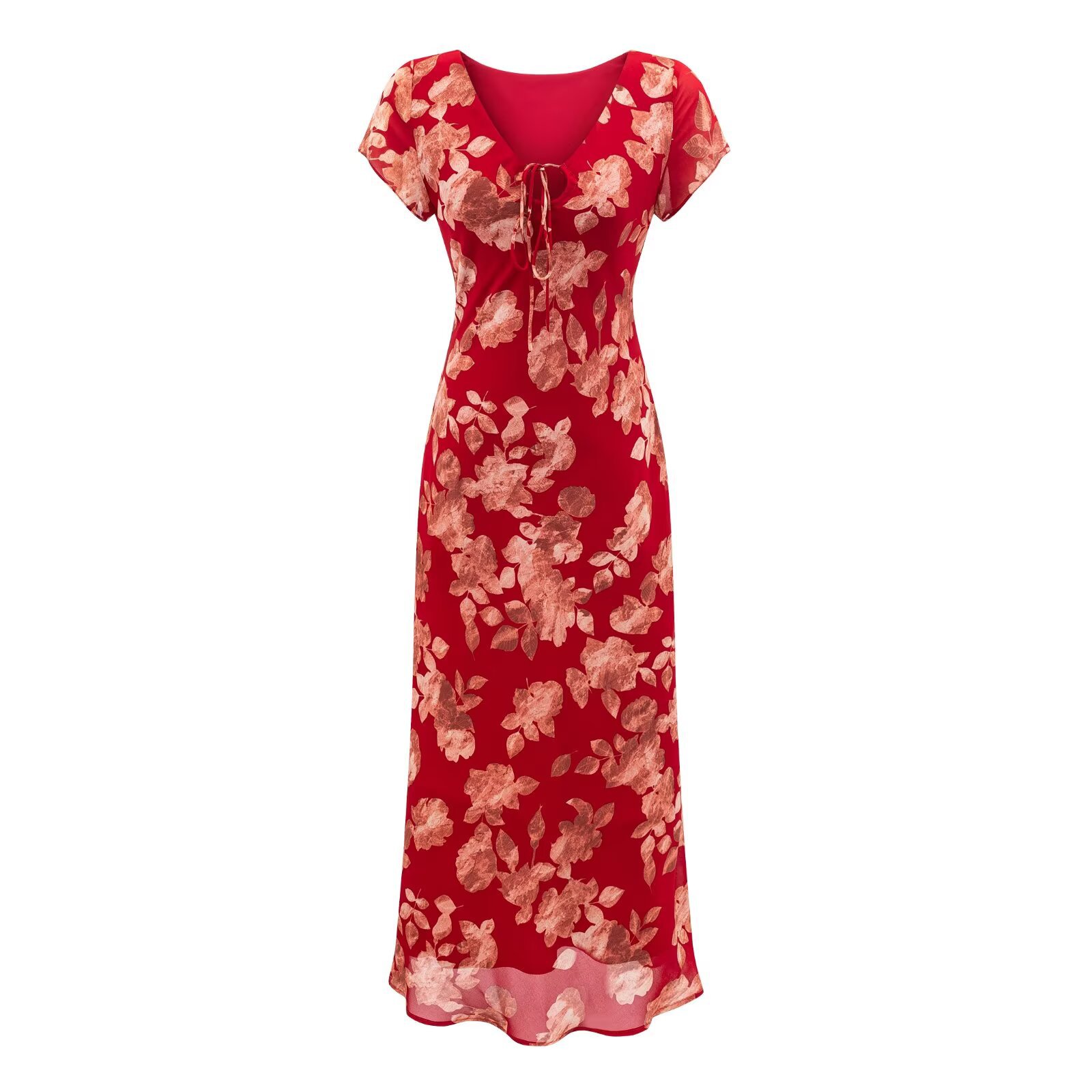 2026春季新款甜美印花中长款法式V领短袖连衣裙
