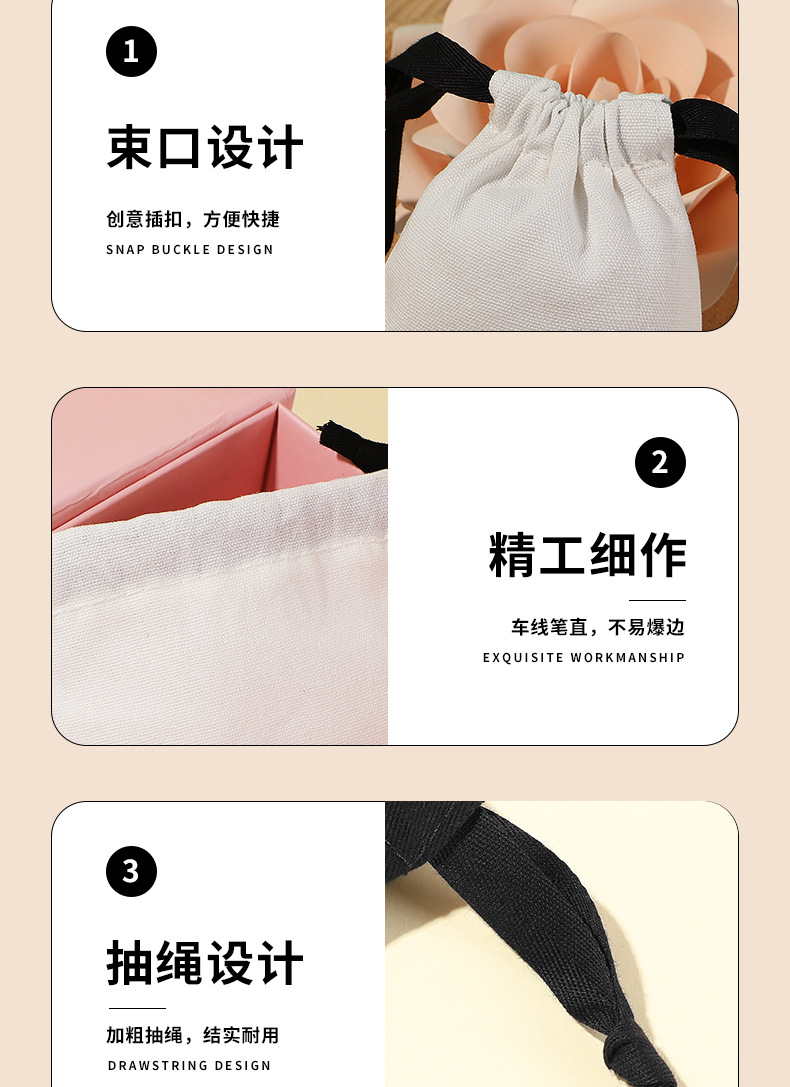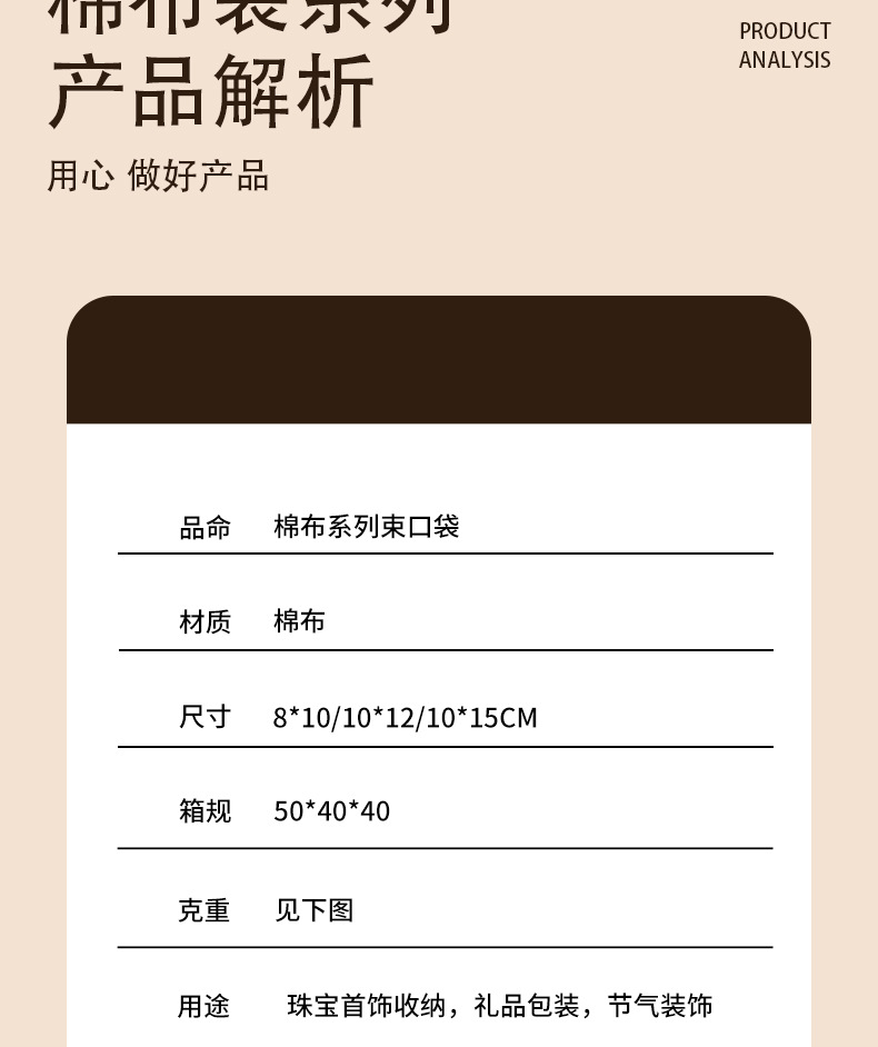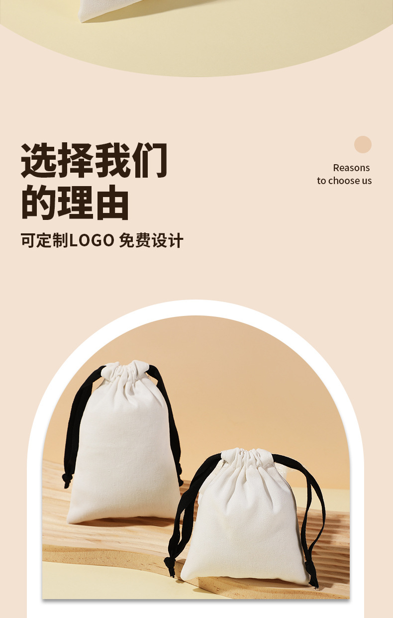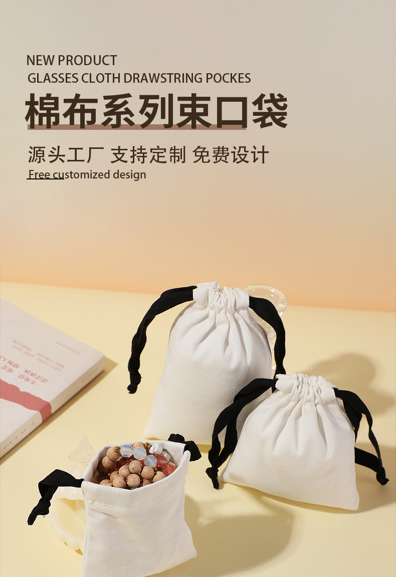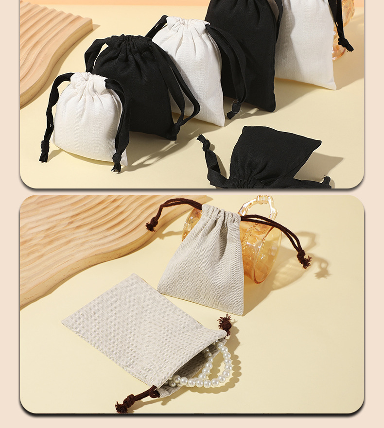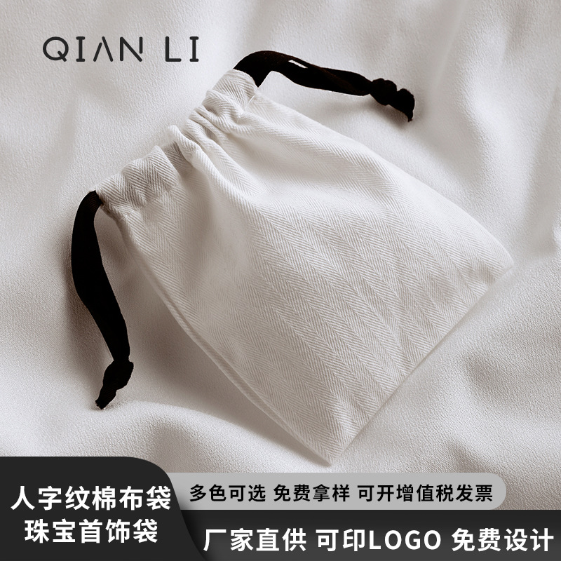 抽绳束口人字纹棉布袋可印logo饰品首饰袋高级感珠宝礼品包装袋