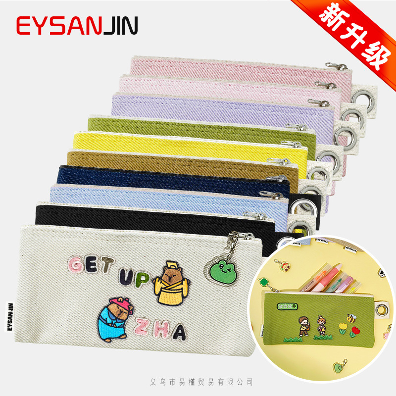 新しい無地日本と韓国のキャンバスバッグドキュメントバッグ DIY ジッパー綿鉛筆バッグ学生文具コイン収納小さなバッグ