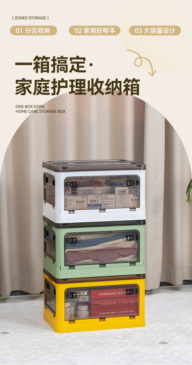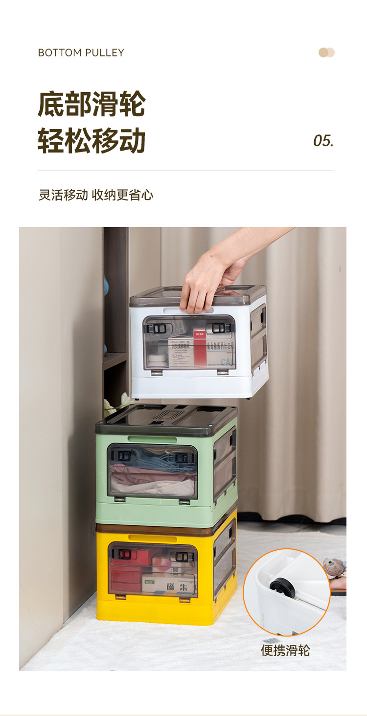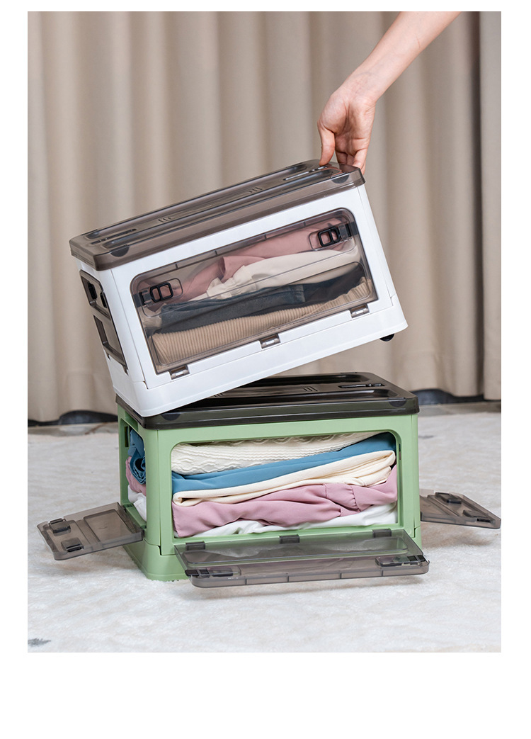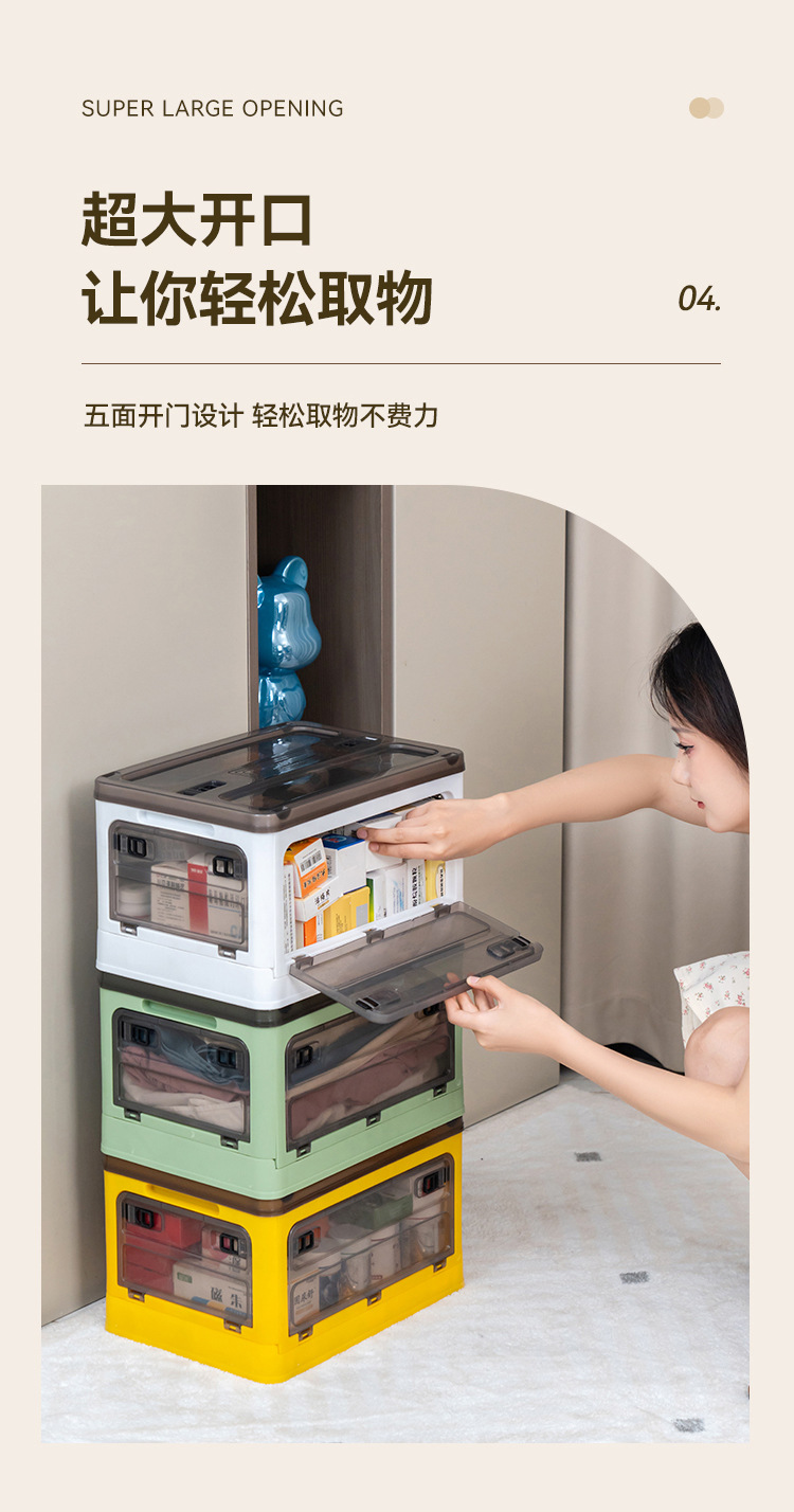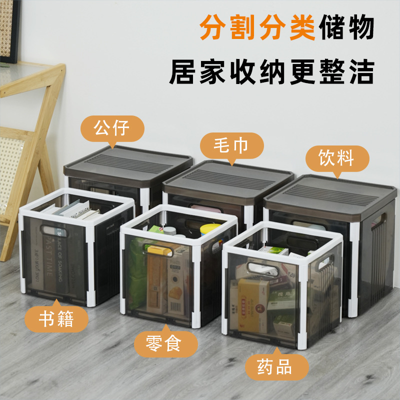 五開き折りたたみボックス家庭用透明衣類収納ボックス玩具スナック収納ボックス多機能折りたたみ式整理ボックス